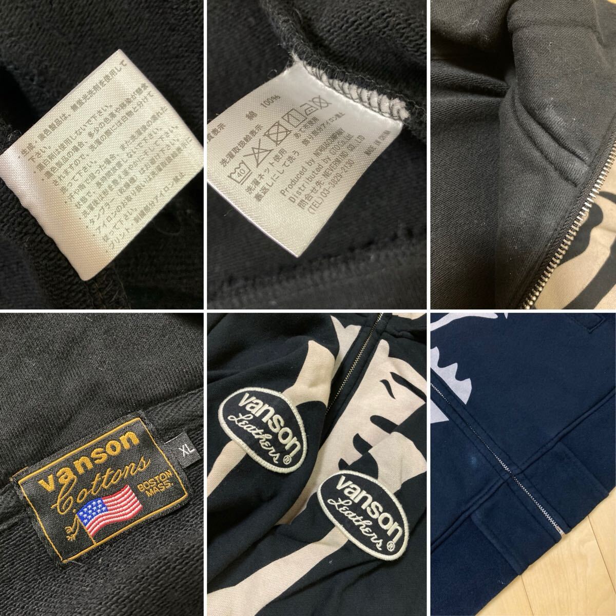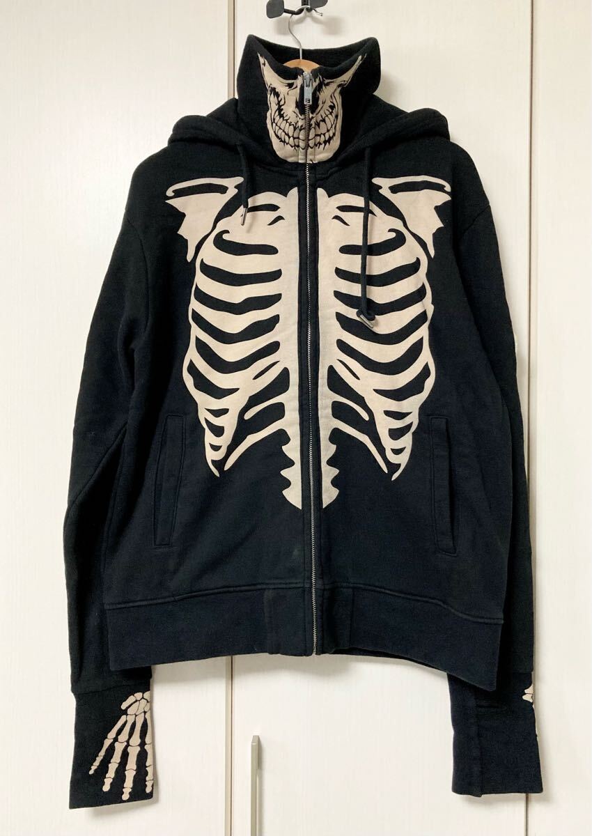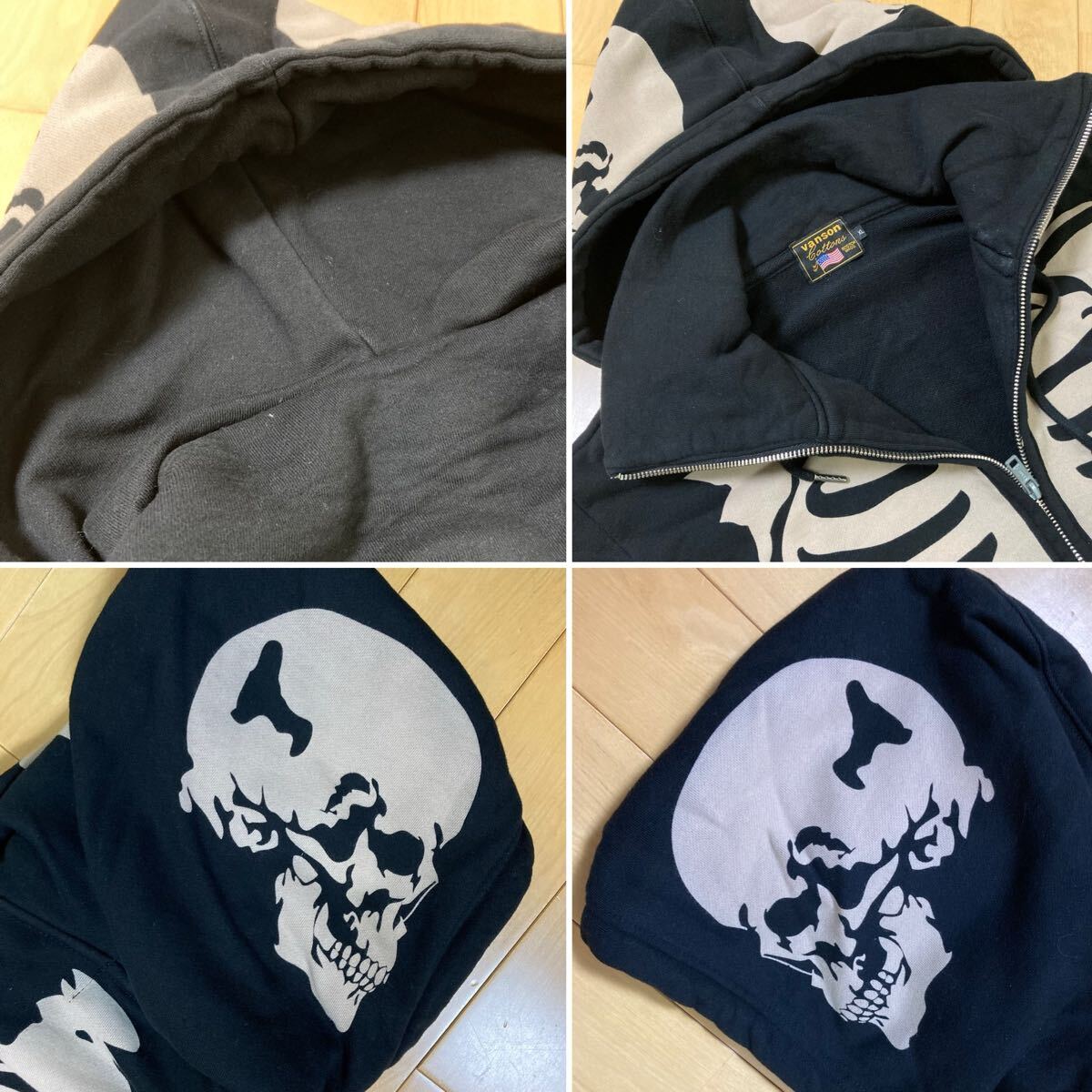 XL☆[VANSON] SKULL BONE FULL ZIP PARKA 骨 ボーン スカル フルジップパーカー XL ブラック バンソン