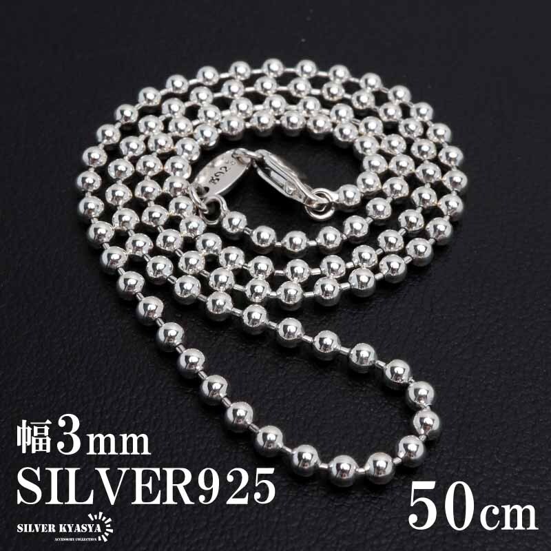 シルバー925 ボールチェーン ネックレス 幅3mm 50cm ネックレスチェーン メンズ 男性 金属アレルギー対応