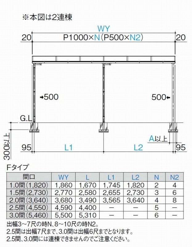 サイズ・材質 | サイズ:間口 3.0間(5,500mm)×出幅3尺(875mm)×標準高2,500mm |