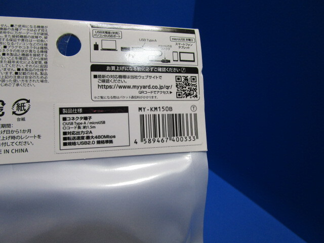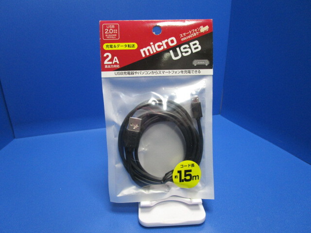 USB A to microUSB 2A ケーブル 1.5m 高出力 ブラック
