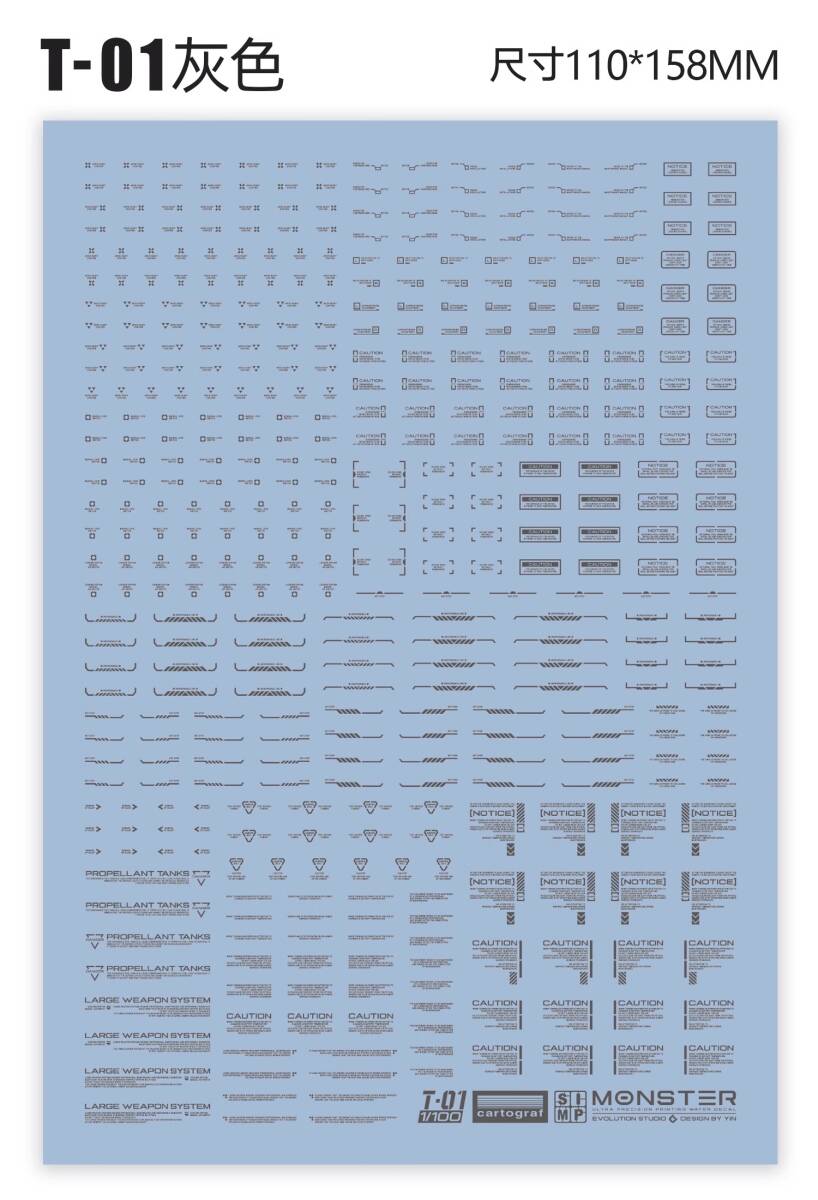 MST-T01-GR Monster 1:100水転写式汎用コーションデカール グレー