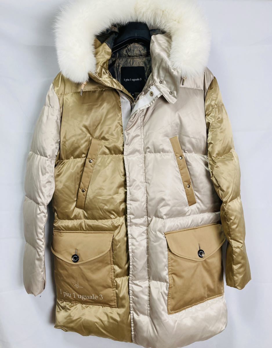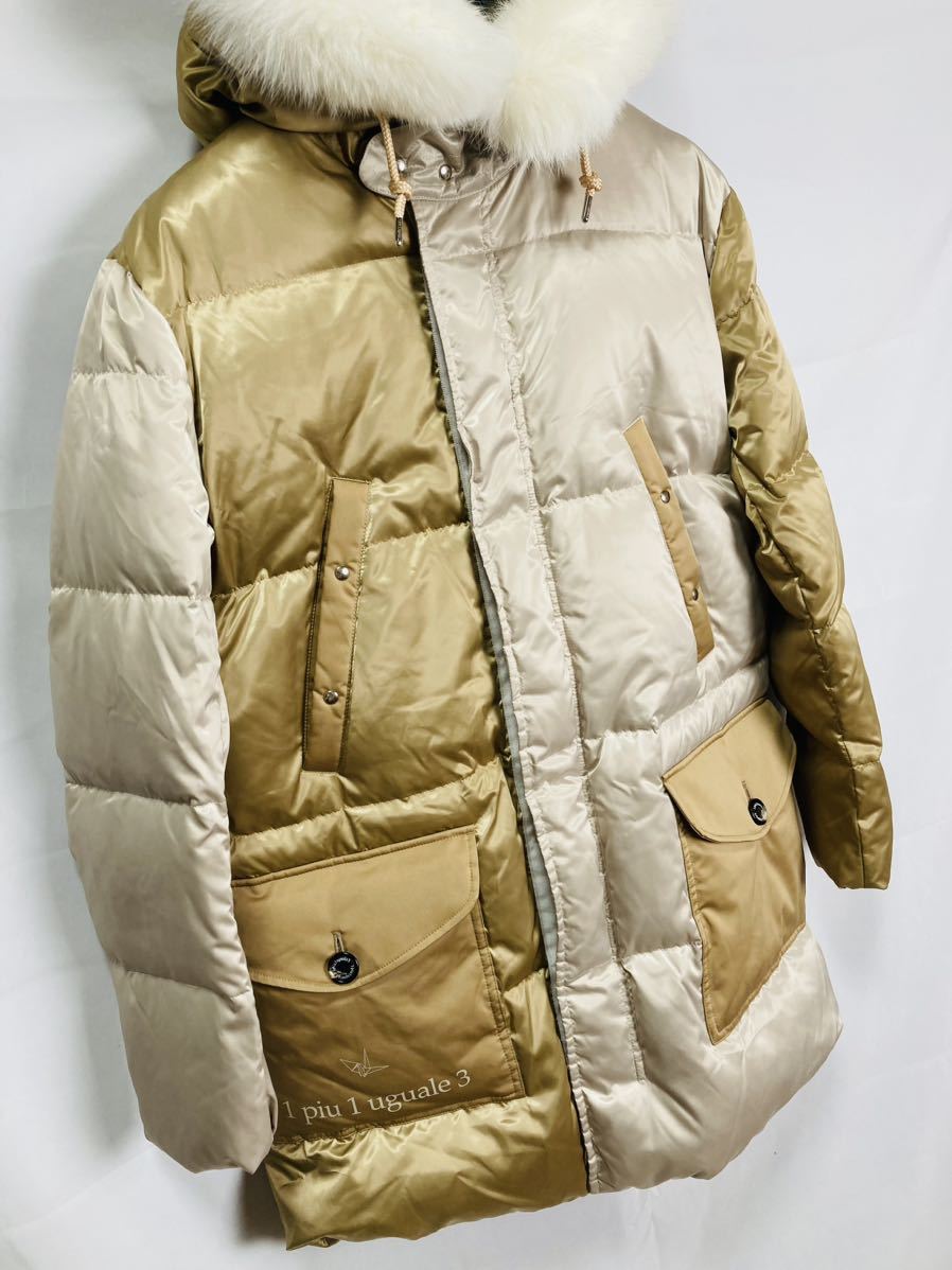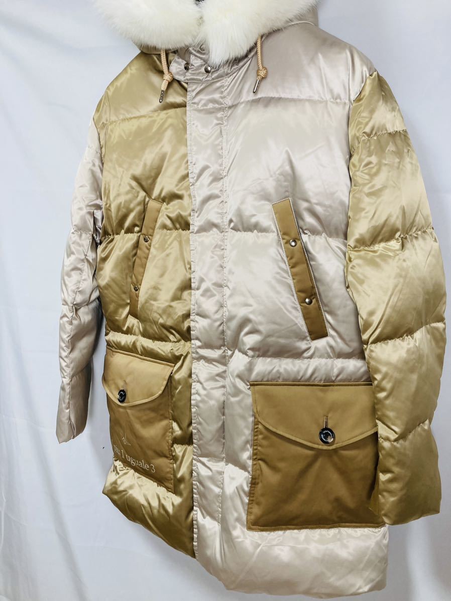 第二次世界大戦中のパイロットが着用した極寒対応のダウンコートをベースに、LIMONTA社の合繊生地を3種採用し、クレイジー仕様にて完成させた「クレイジーフーデットダウン」。