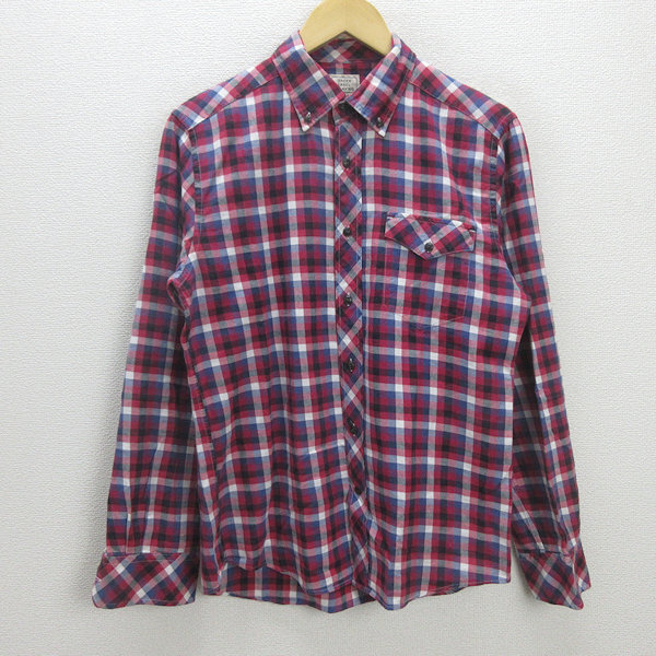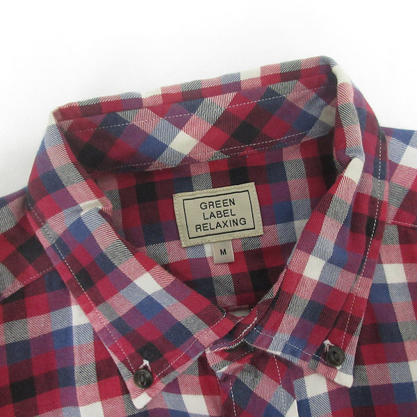 C■ユナイテッドアローズ/Green Label Relaxing チェック柄 長袖BDシャツ【M】赤系/MENS■128【中古】■