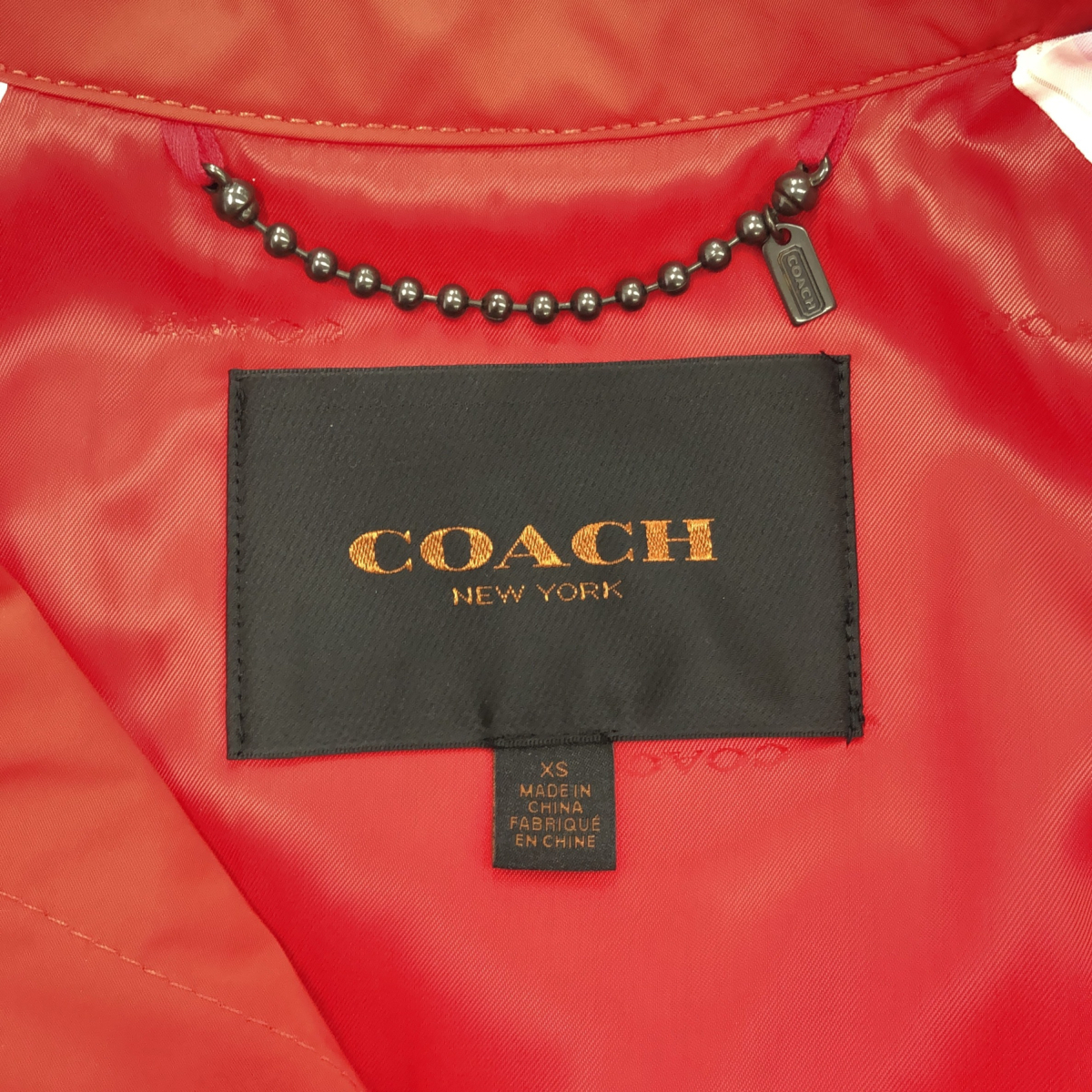 COACH コーチ ラバーロゴワッペン ナイロン ミドルトレンチコート XSサイズ レッド ベルト付