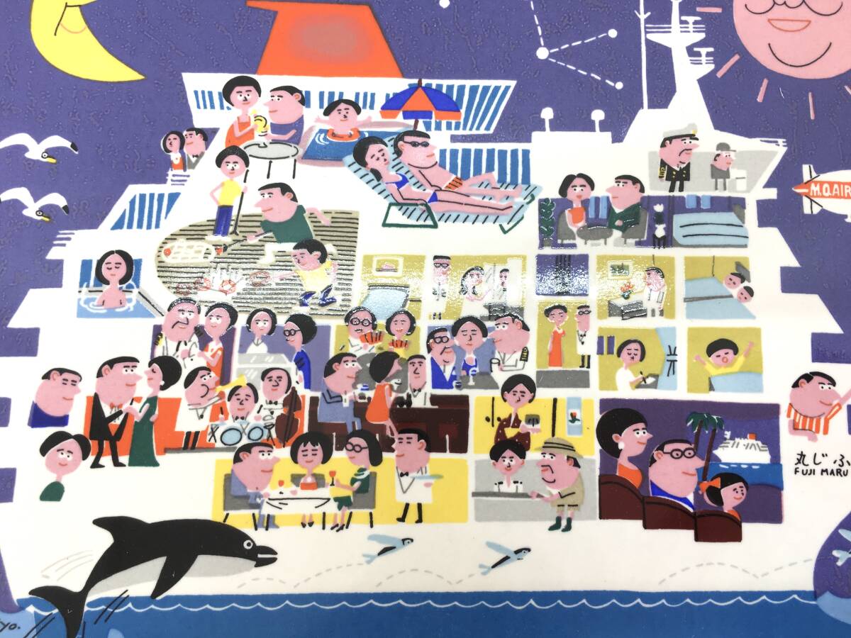 柳原良平 陶板 セラミックタイル ふじ丸 竣工記念 壁掛け 立て掛け アンクルトリス 15cm×15cm