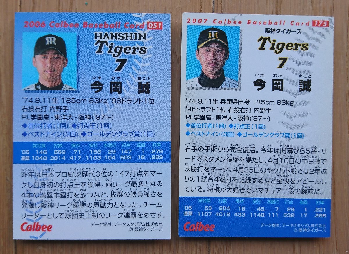 【カード・カルビー】今岡誠 2006年051 / 2007年175 計2枚セット 阪神タイガース カルビープロ野球チップス