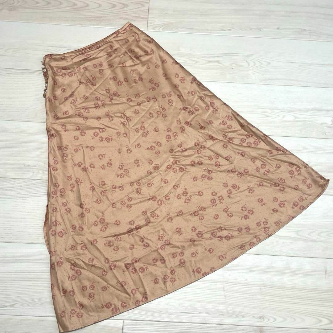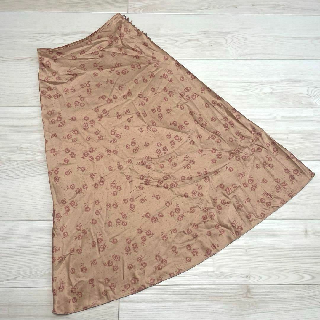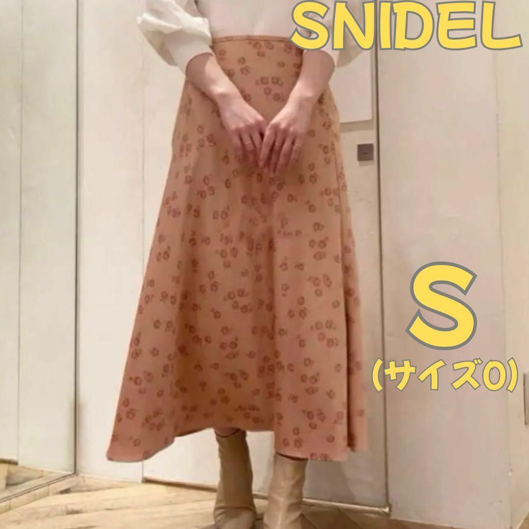 SNIDELのサテンロングスカート。花柄でフレアが可愛いアイテムです。シルクのような質感でエレガントな印象。