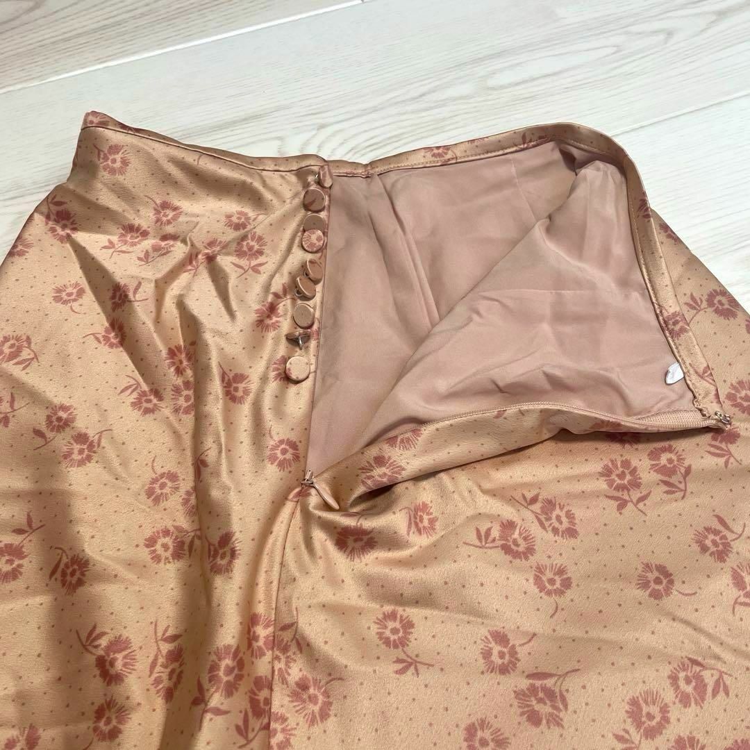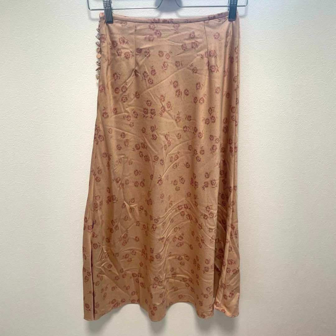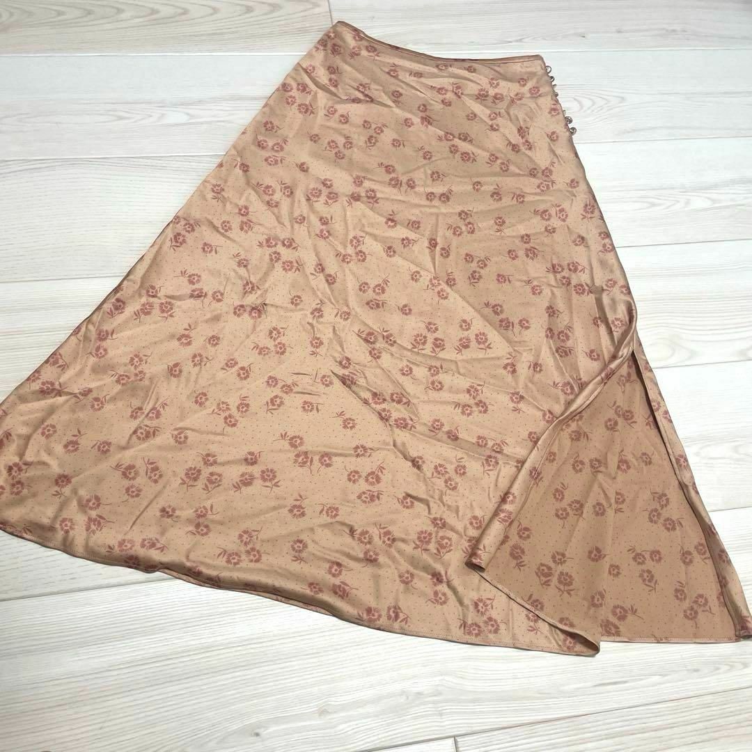 SNIDELのサテンロングスカート。花柄でフレアが可愛いアイテムです。シルクのような質感でエレガントな印象。