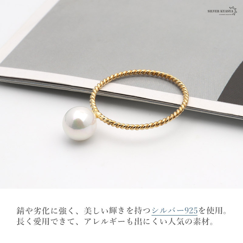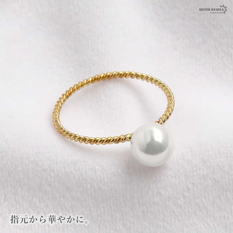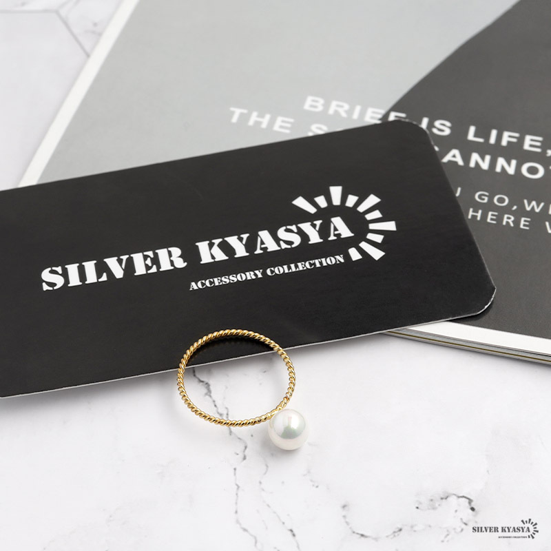 幅1mmのリングに1粒のパールが美しいリング。さりげないロープデザインもお洒落。
