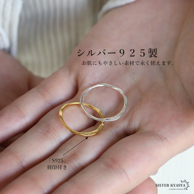 商品概要 | ■ITEM DETAIL 緩やかな「ゆがみ」がお洒落な細身リング。普段使いにおすすめのアイテムです。 ■SILVER925素材 シルバー925は、銀含有率(純度)92.5%を示し、一般的に純銀として扱われています。サビや劣化等がほとんどなく金属アレルギーも出にくいとされており、アクセサリーとして重宝される金属です。 |