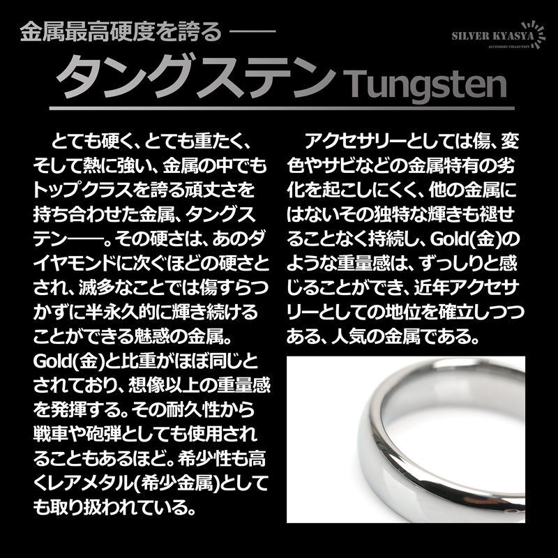 黒みがかったタングステン独特のシルバーの輝きが指元をシンプルかつ大胆に指元を