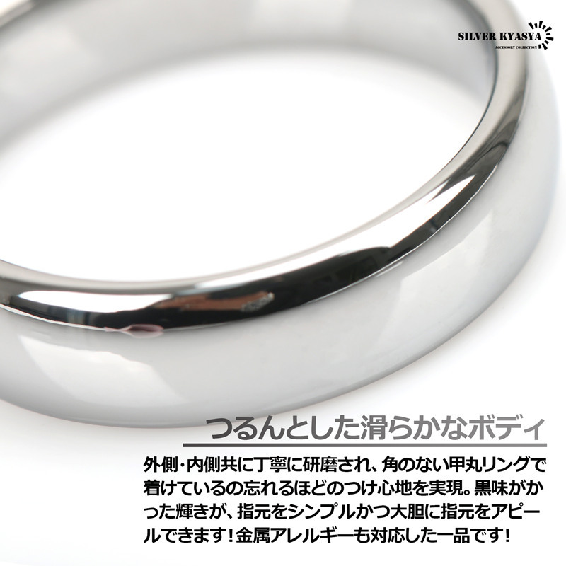 外側・内側共に丁寧な加工が施されており、角のない甲丸リングで、着けているのを