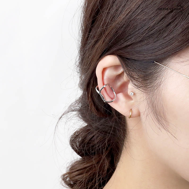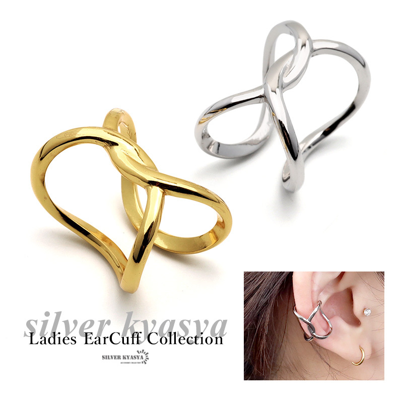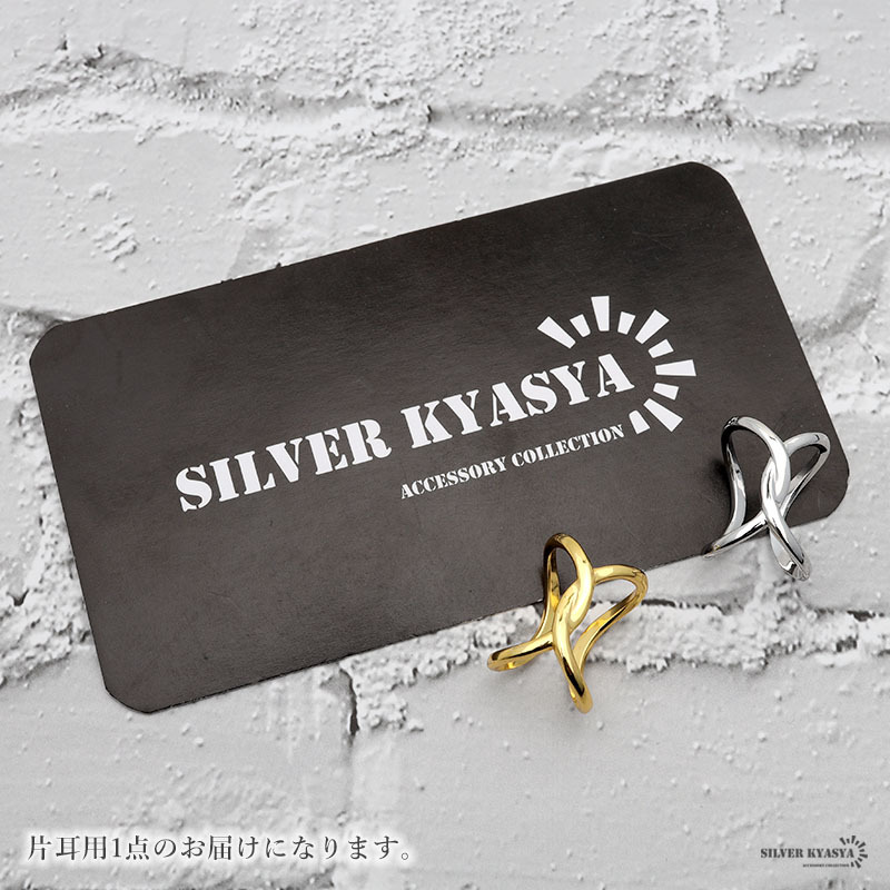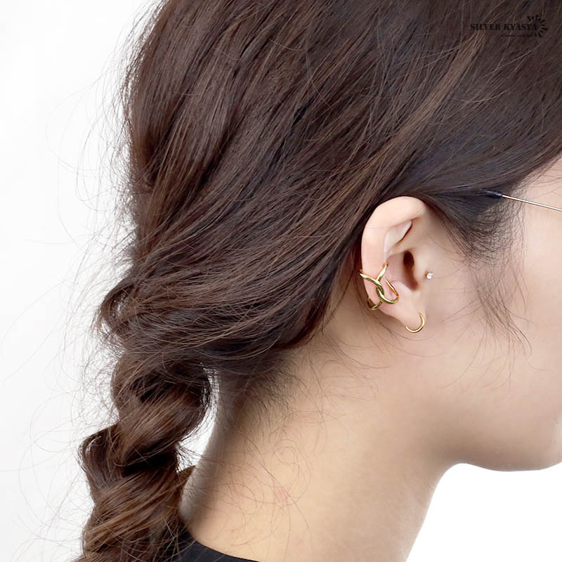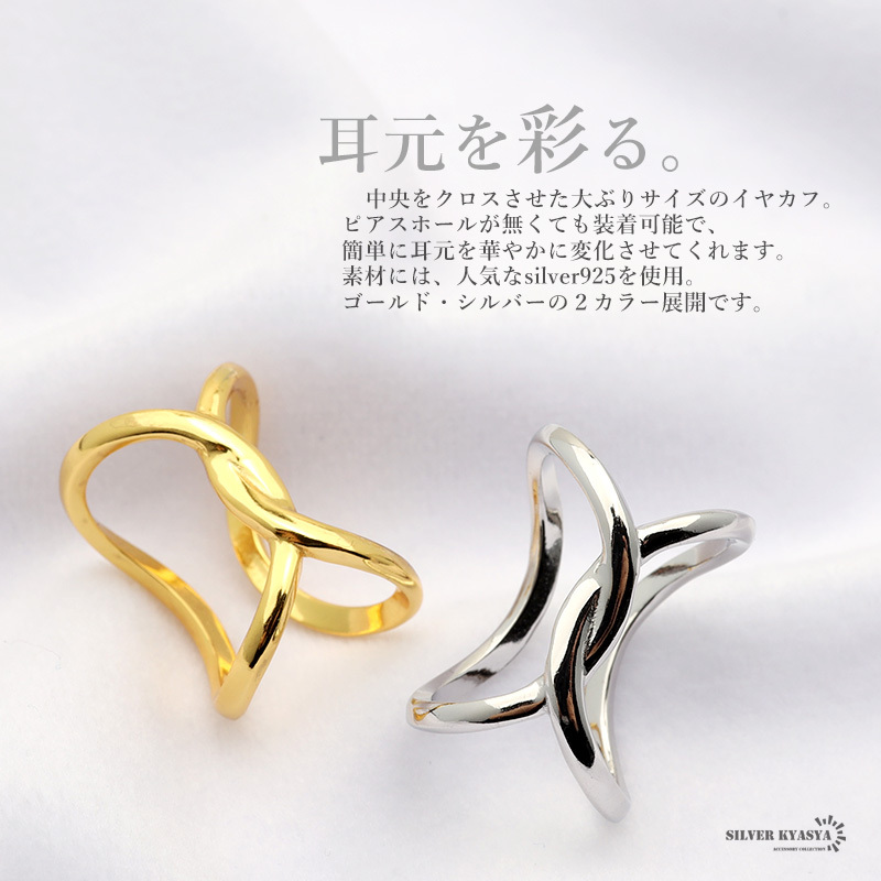 中央をクロスさせた大ぶりのサイズのイヤカフです。
