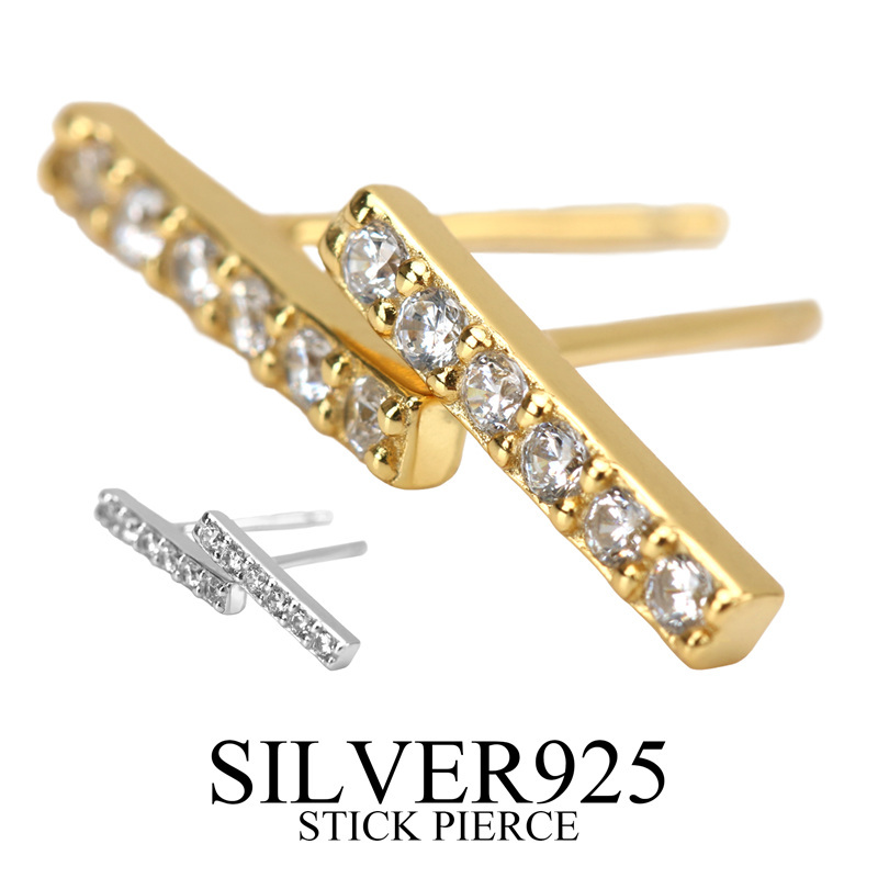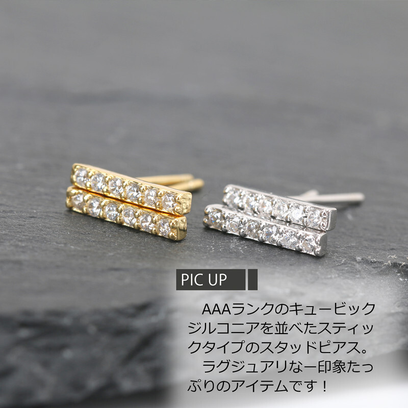 AAAランクのキュービックジルコニアを並べたラグジュアリなースティックピアス