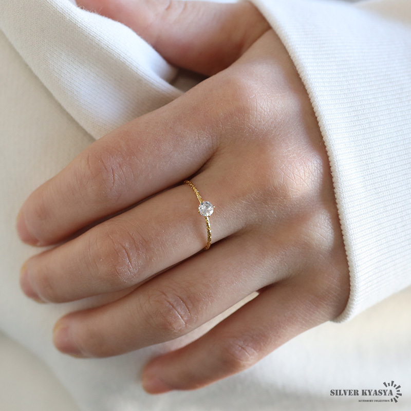 | 商品概要 | ■ITEM DETAIL 大粒のジルコニアが光を反射しきらきらと輝く一粒リング。極細アームには槌目模様を施し、より華やかに仕上げました。存在感がありワンポイントにぴったりのアイテムです。 ■ステンレス素材 金属部分は頑丈なことで知られるステンレス素材を採用。耐久性はもちろん耐水性も高く水場での着用も可能。金属アレルギーも出にくいとされている金属です。 |