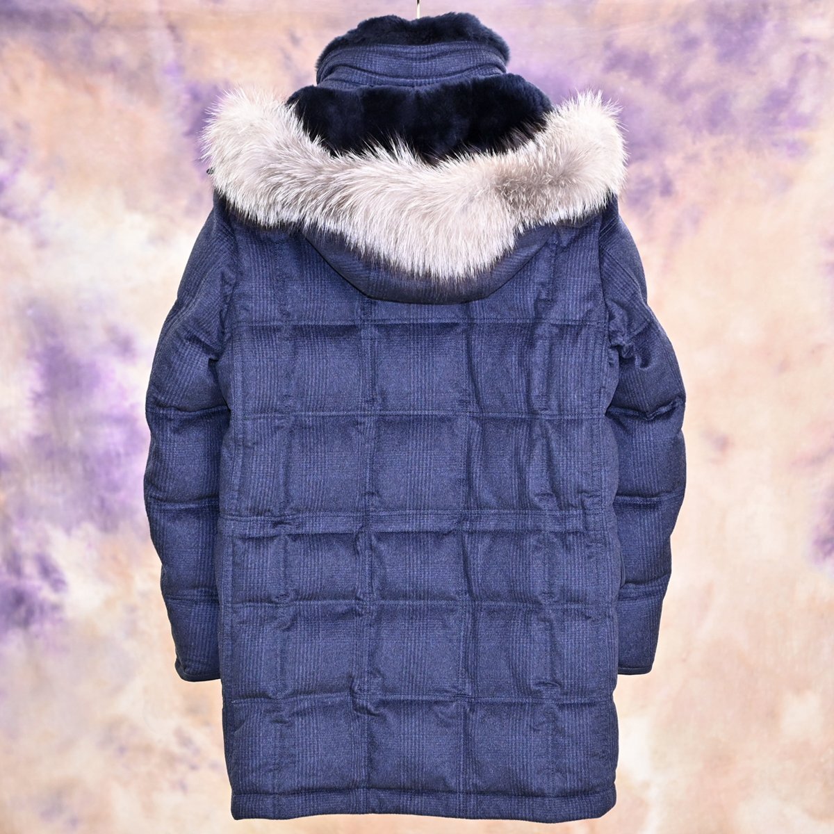 モデル | ピュアカシミヤ フード付 チェック柄 ダウンロングジャケット |
