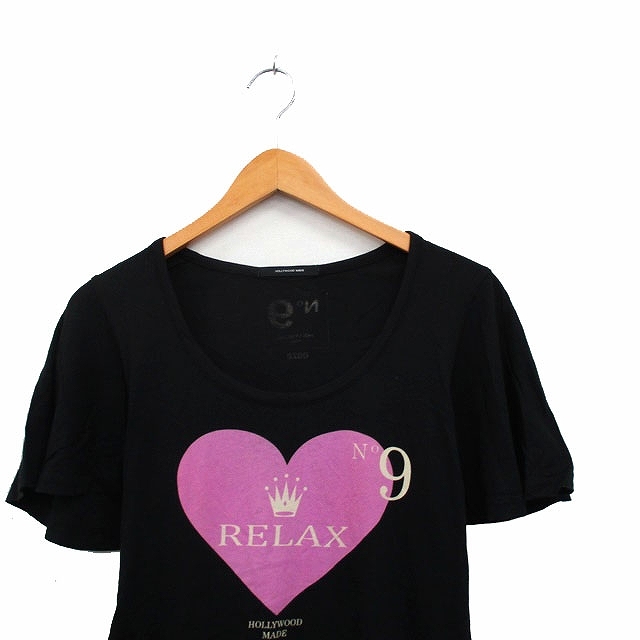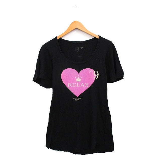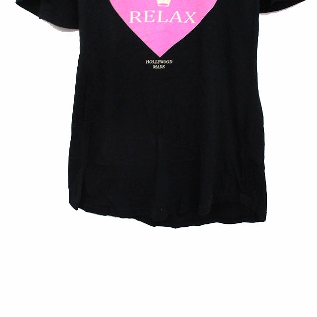 ハリウッドメイド HOLLYWOOD MADE Tシャツ カットソー 半袖 コットン プリント S ブラック 黒 /KT14 レディース