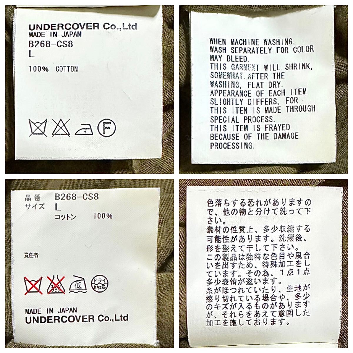 品質表示タグ記載通り、1点1点異なる製品加工が施してあります。