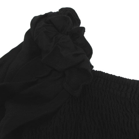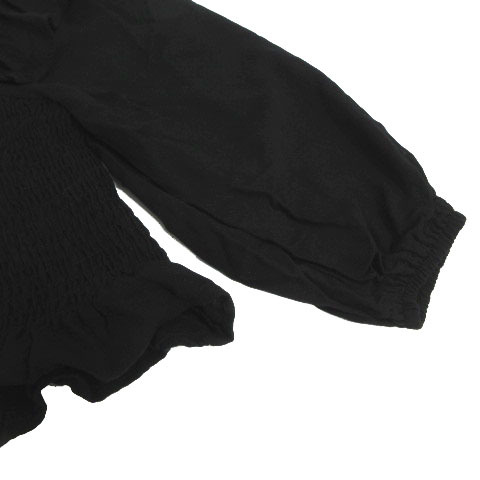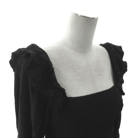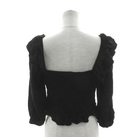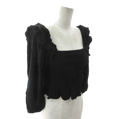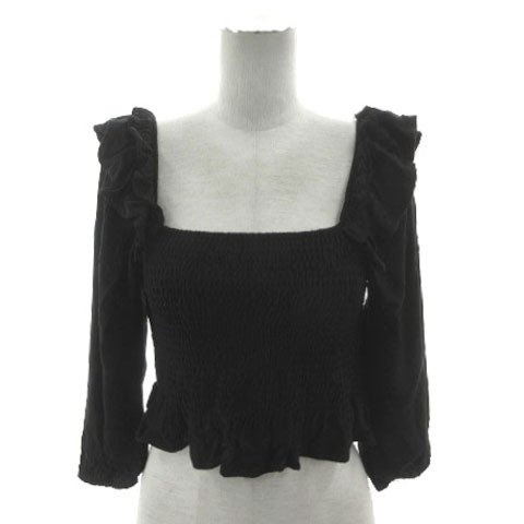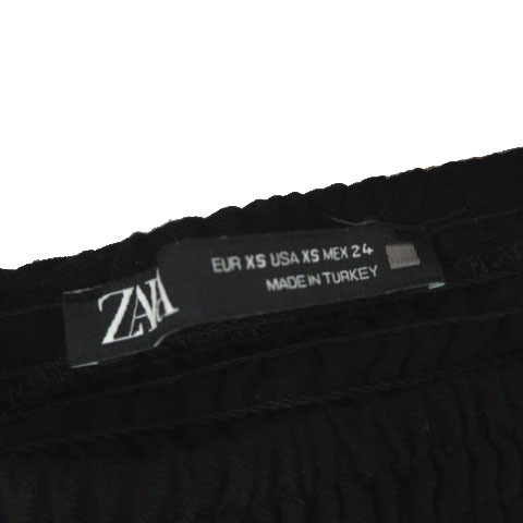 ザラ ZARA ギャザーフリルブラウス シャーリング 七分袖 クロップド丈 ストレッチ ブラック 黒 XS レディース