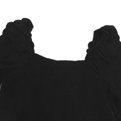 【仕様】ギャザーフリルブラウス シャーリング 七分袖 クロップド丈 ストレッチ