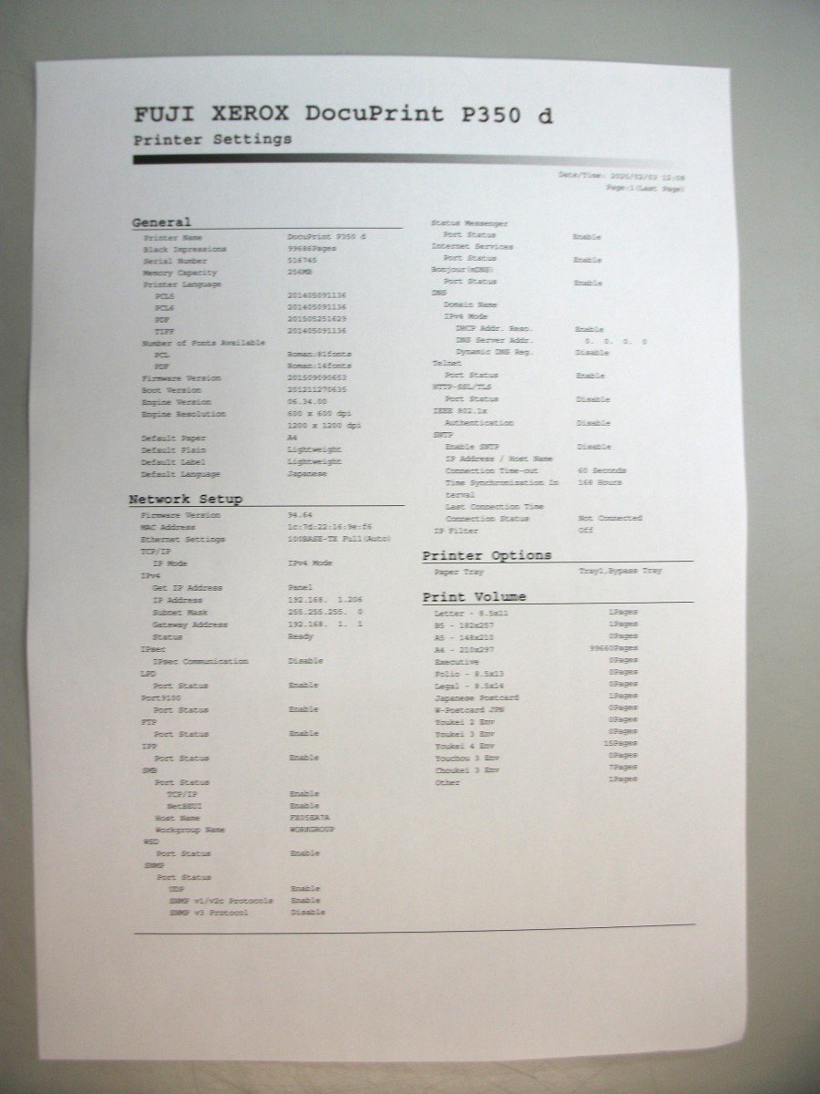 カセットトレイ動作確認済み。 手差し印刷動作確認済み。 連続印刷動作確認済み。 自動両面印刷動作確認済み。 USB、LAN動作確認済み。 |