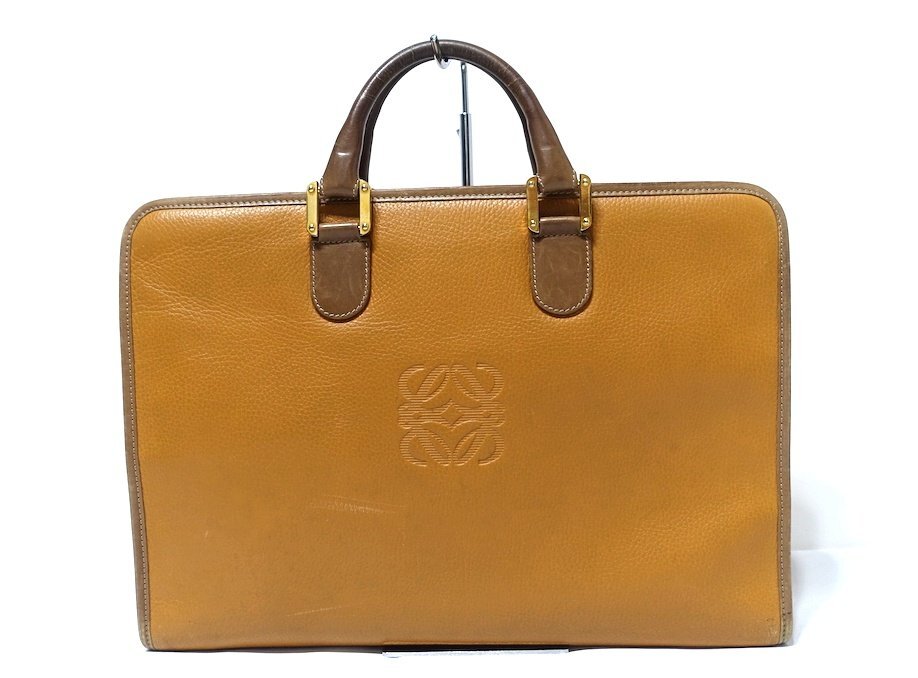 LOEWE ロエベ アナグラム エンボスロゴ ブリーフケース カーフ グレインレザー ブラウン A4収納可 メンズ ビジネスバッグ 書類鞄