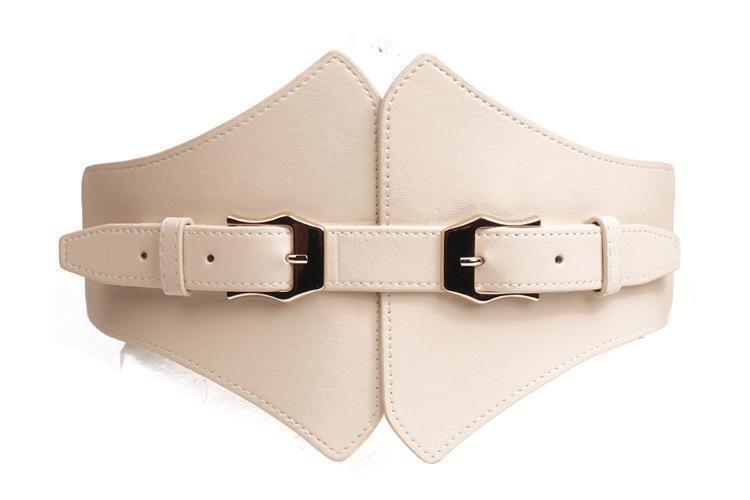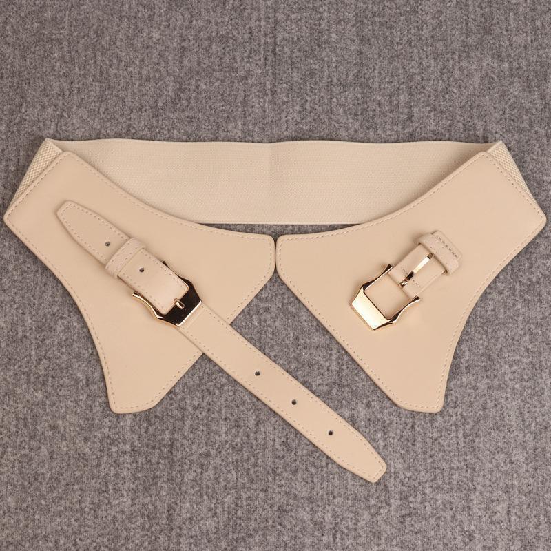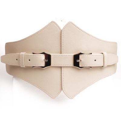 70cm~89cm 【ベージュ色】 ゴールドバックル 幅広ゴムベルト