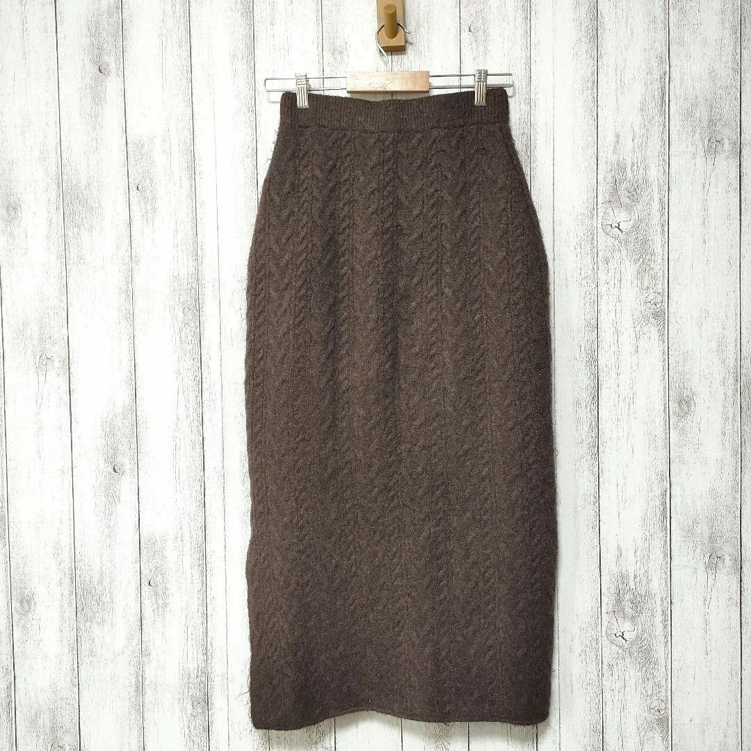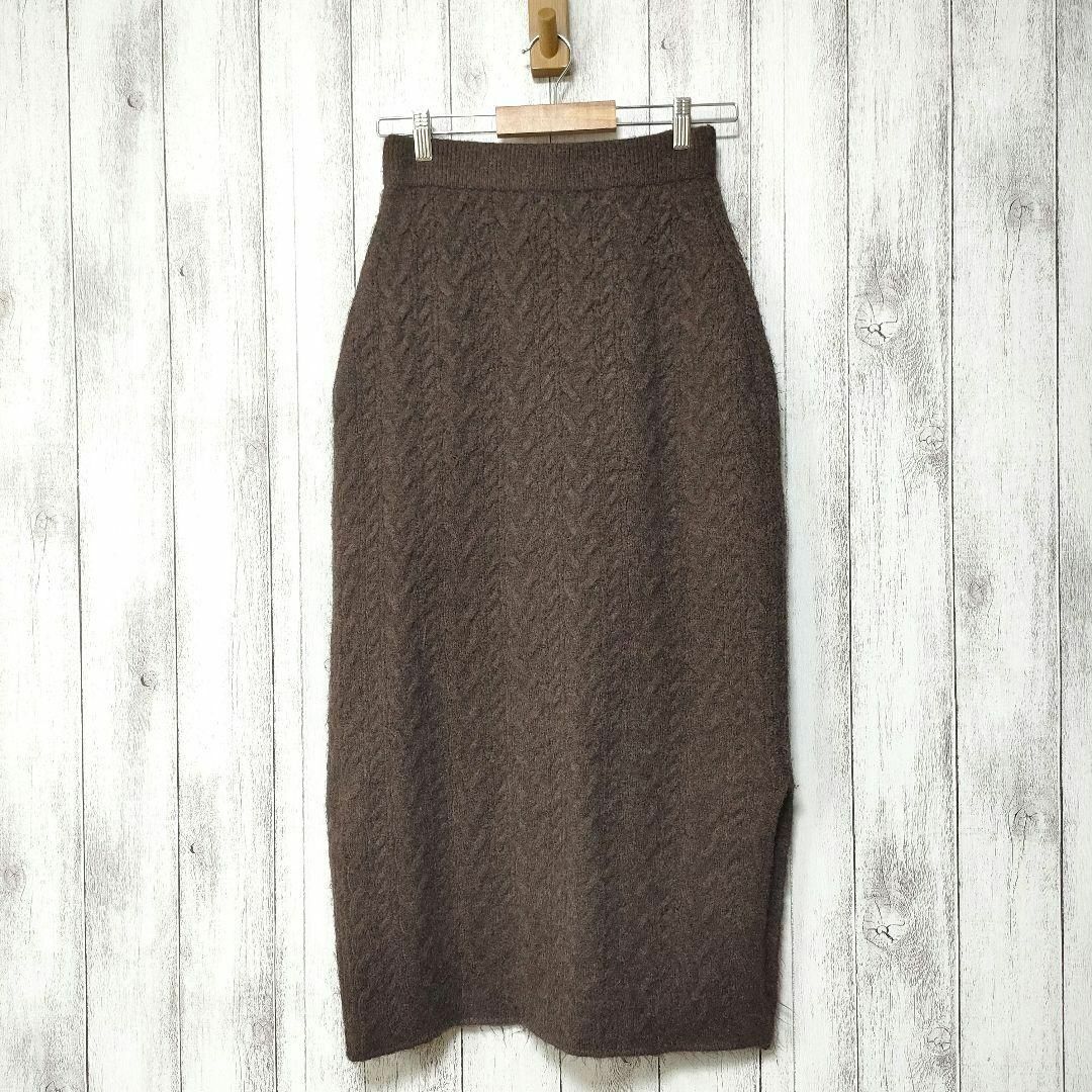 ケーブル編地が温もりあるニットタイトスカート。やや長め丈のストンと落ちるタイトシルエットで、ほっこり感をセーブした上品なルックスが魅力。シャツと合わせてカジュアルなスタイリングや、ダウンやウールコートを羽織るバランスもおすすめです。
