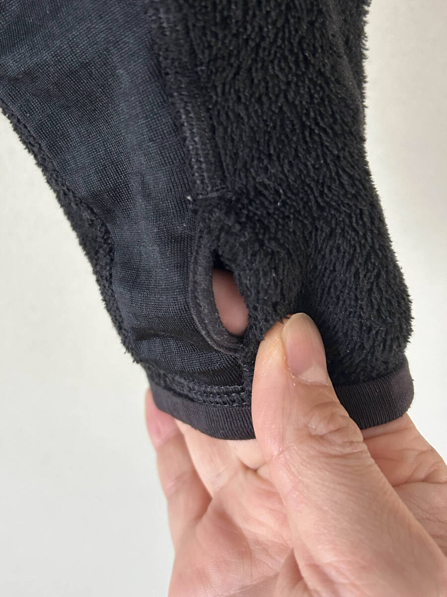 いわいるモコモコ系のフリースとは異なり、比較的タイト目にすることで