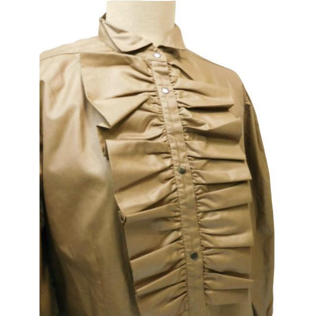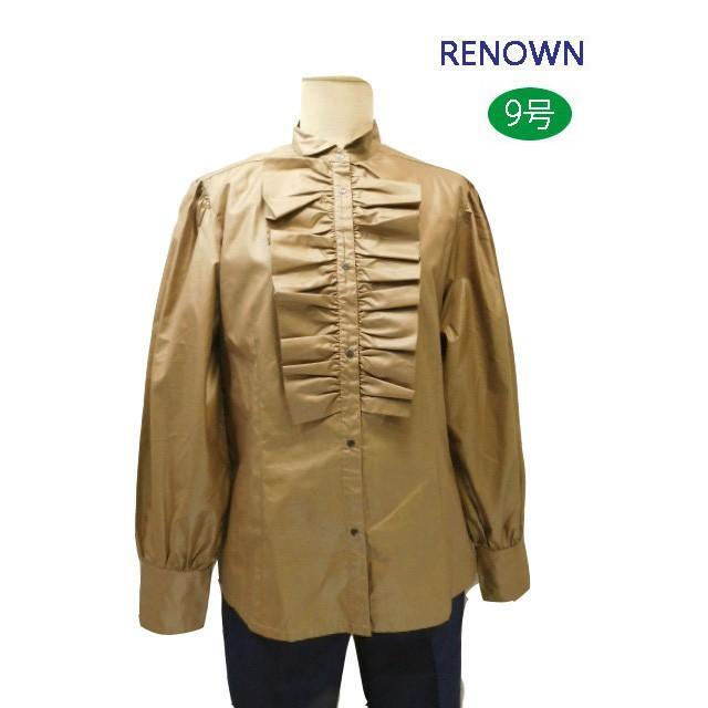 r899 昭和レトロ 長袖ブラウス フリル 9号 ブラウン 無地 秋冬 Mサイズ 昭和ノスタルジック レディース
