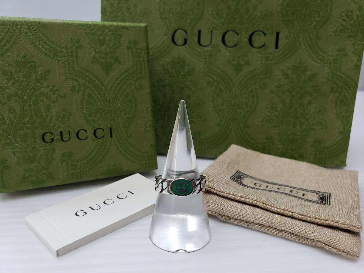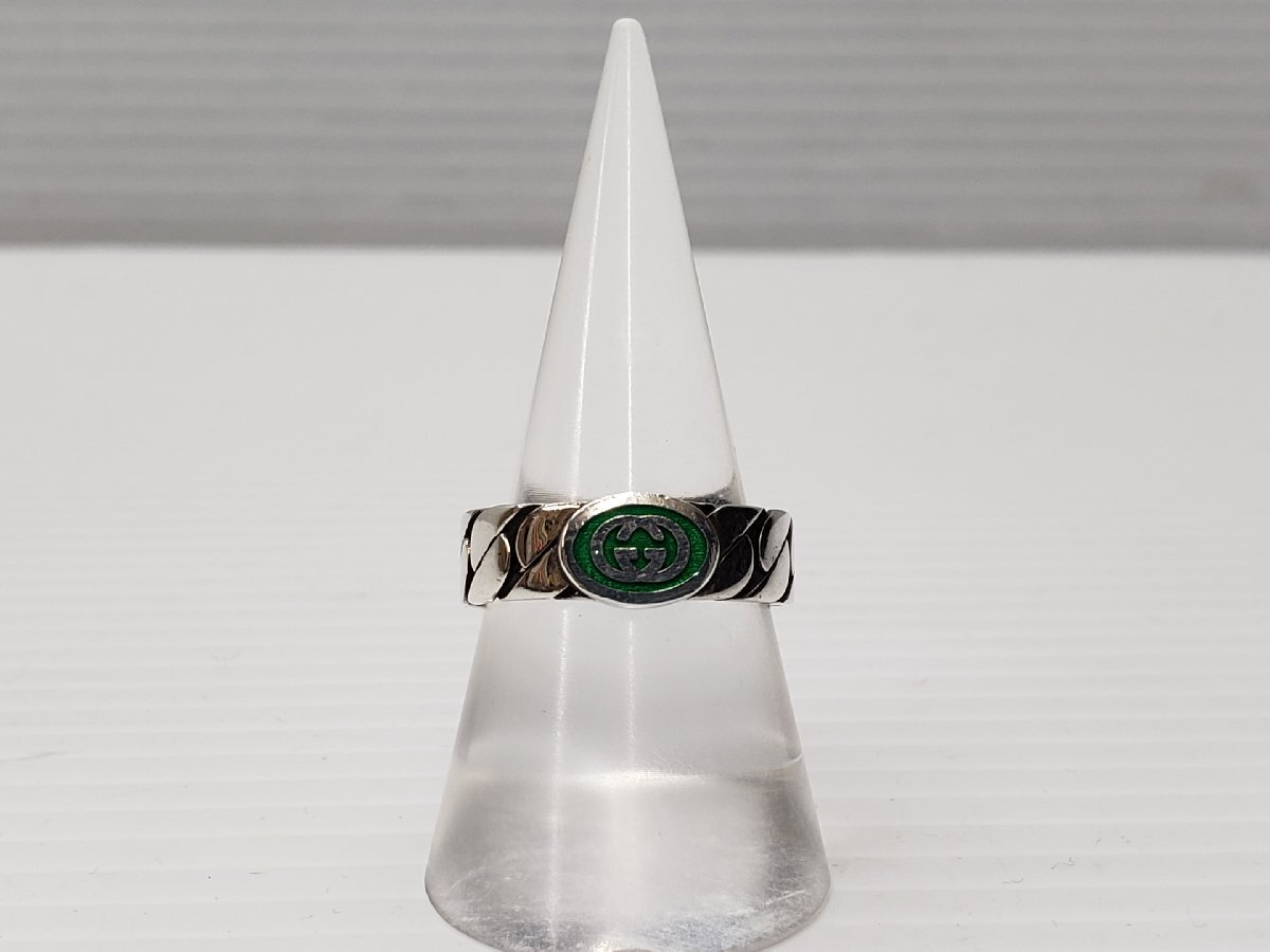 GUCCI グッチ リング シルバー グリーン SV925 インターロッキングG 18号 箱+ショッパー付 ▽140029 | |||||||||