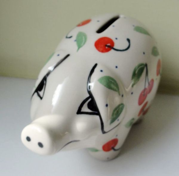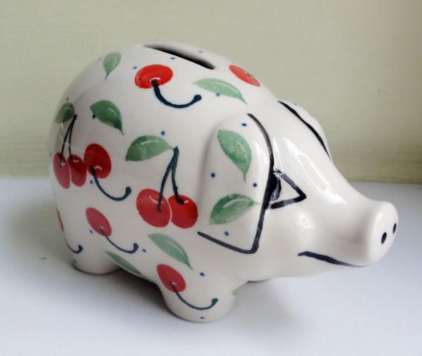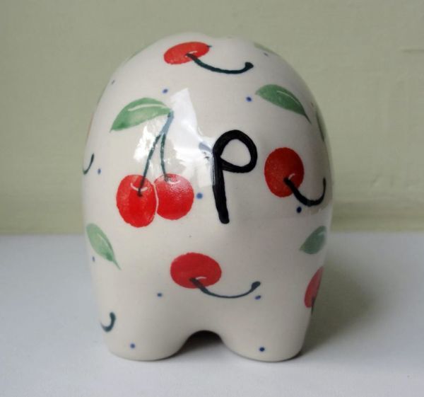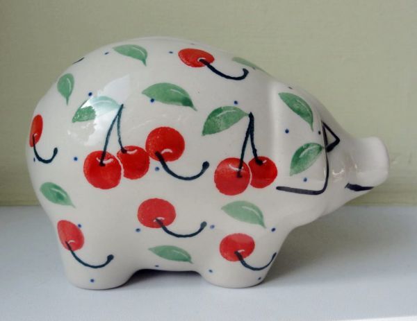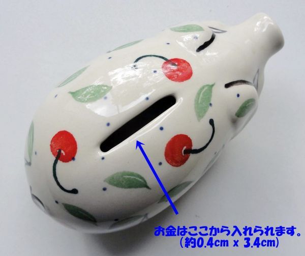 x363 ポーランド陶器 さくらんぼ ブタの貯金箱 置物 食器 ポーリッシュポタリー