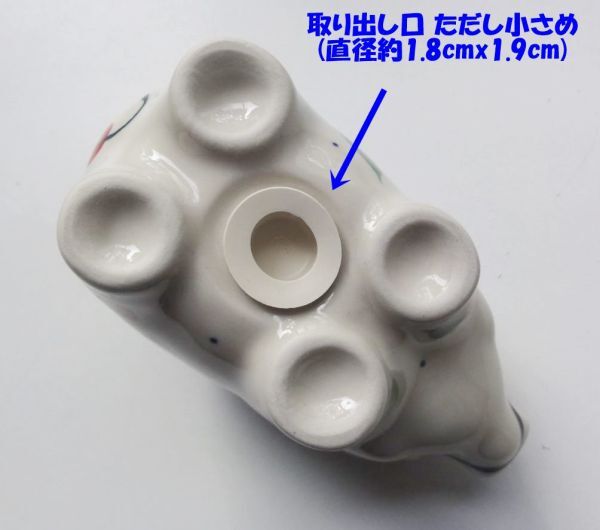 ただ、底部のお腹にある取り出し口が、直径約1.8cm x 1.9cmと少々小さめです。