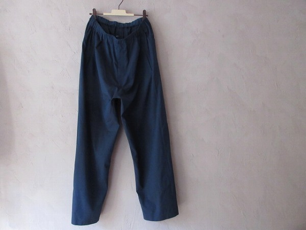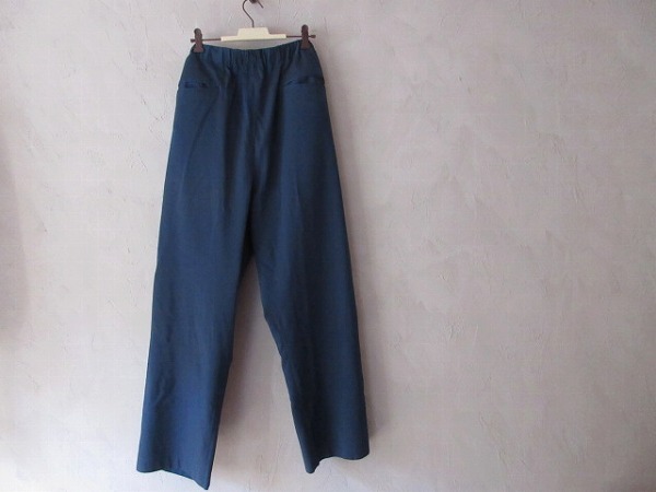 Graphpaperのイージーパンツ。縦糸と横糸それぞれ微配色に染めた交織のキュプラ素材にストレッチ性のあるポリエステルをブレンドした生地を使用しています。光沢とドレープによる陰影と、動きを妨げない伸縮性とすべりの良さも特徴です。フロントの腰の位置とバックに両玉縁ポケットを配置。ウエストはゴムとドローコードで微調整が可能なイージーパンツデザイン、同色に染めたステッチ入りのドローコードがアクセントに。フロントはYKK社製ファスナーを採用したジップフライ仕様。股上を深めにしてヒップや太腿周りにゆとりを持たせ、裾に向かってほんのりと緩やかに絞りを入れる事でスッキリとした綺麗なラインを表現したリラックス感のあるワイドストレートシルエット。脇ハギが無いことで筒感が強調され、カジュアルでありながらも上品な雰囲気のプロダクトです。