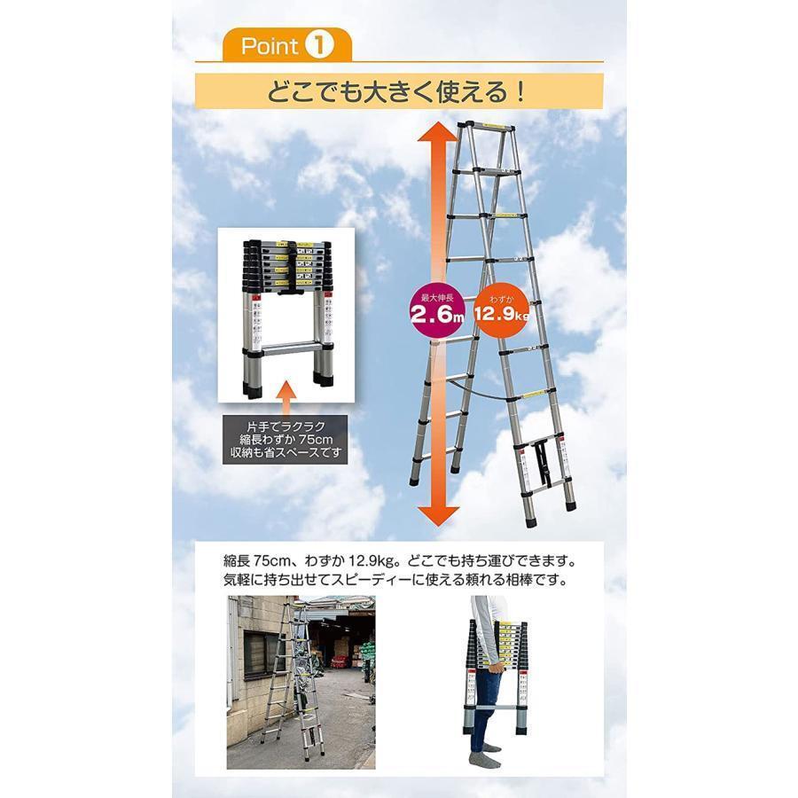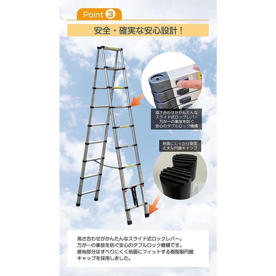高所作業 掃除 雪おろし 雪下ろし 大掃除 ガーデニング 洗車 ステップ 伸びる 伸縮はしご 伸縮梯子