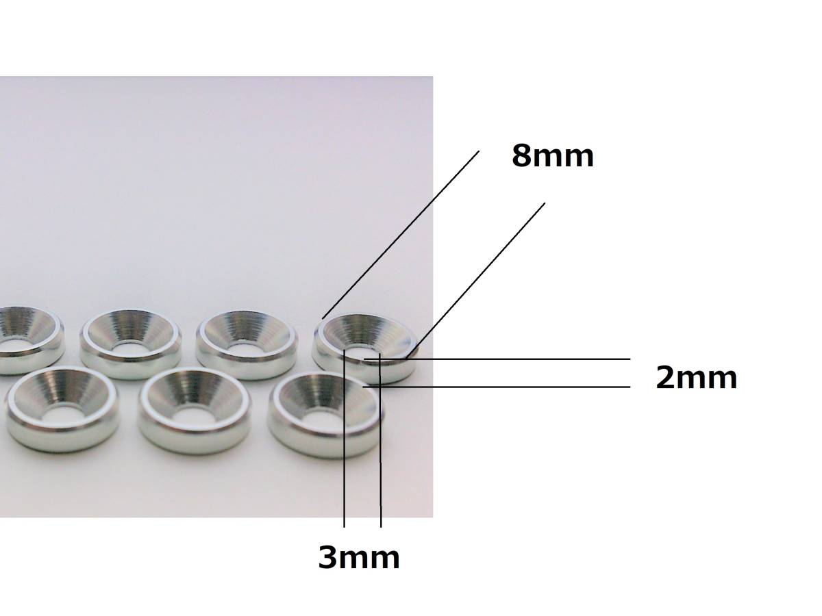☆アルミ カラーワッシャー シルバー M3皿ネジ用 8個1セット