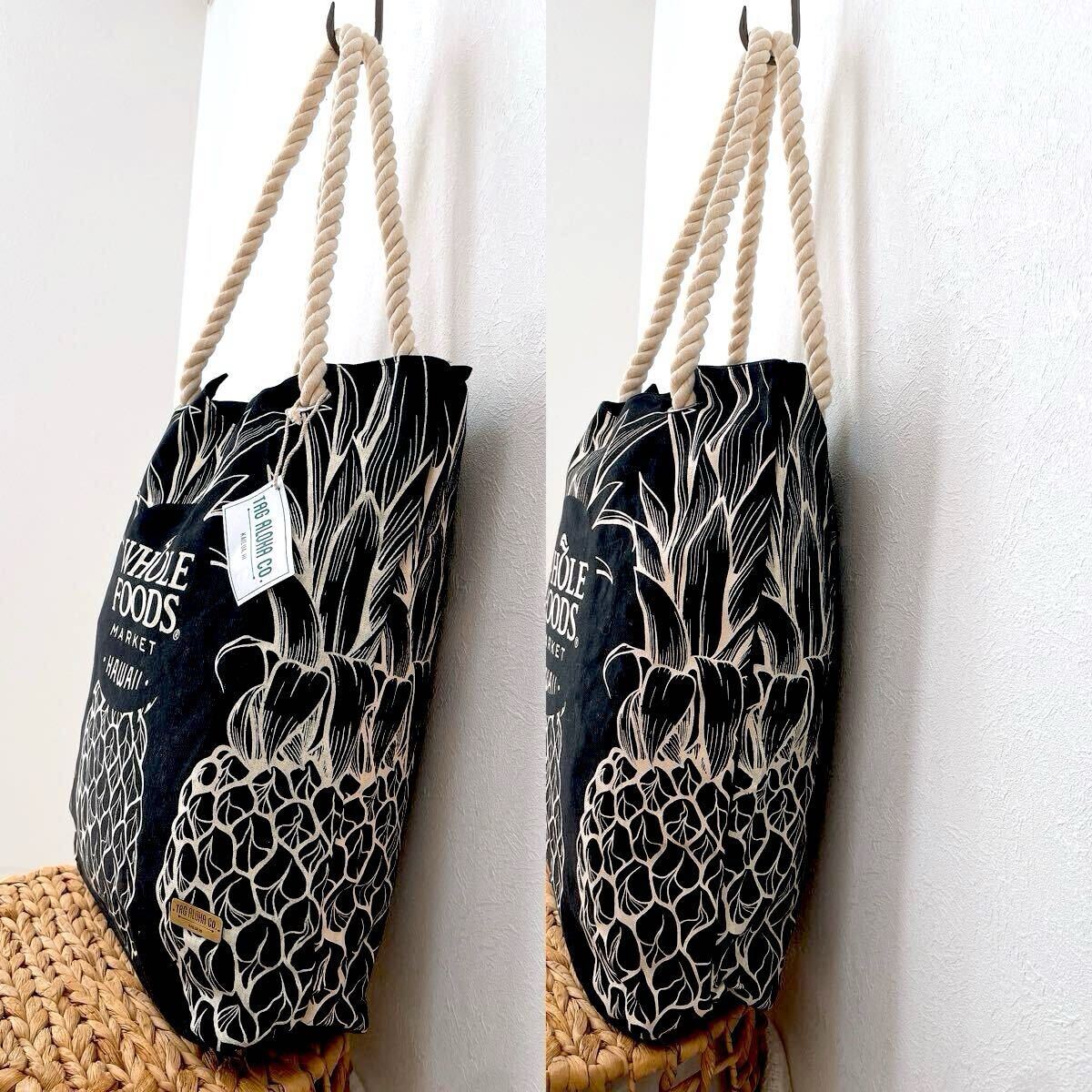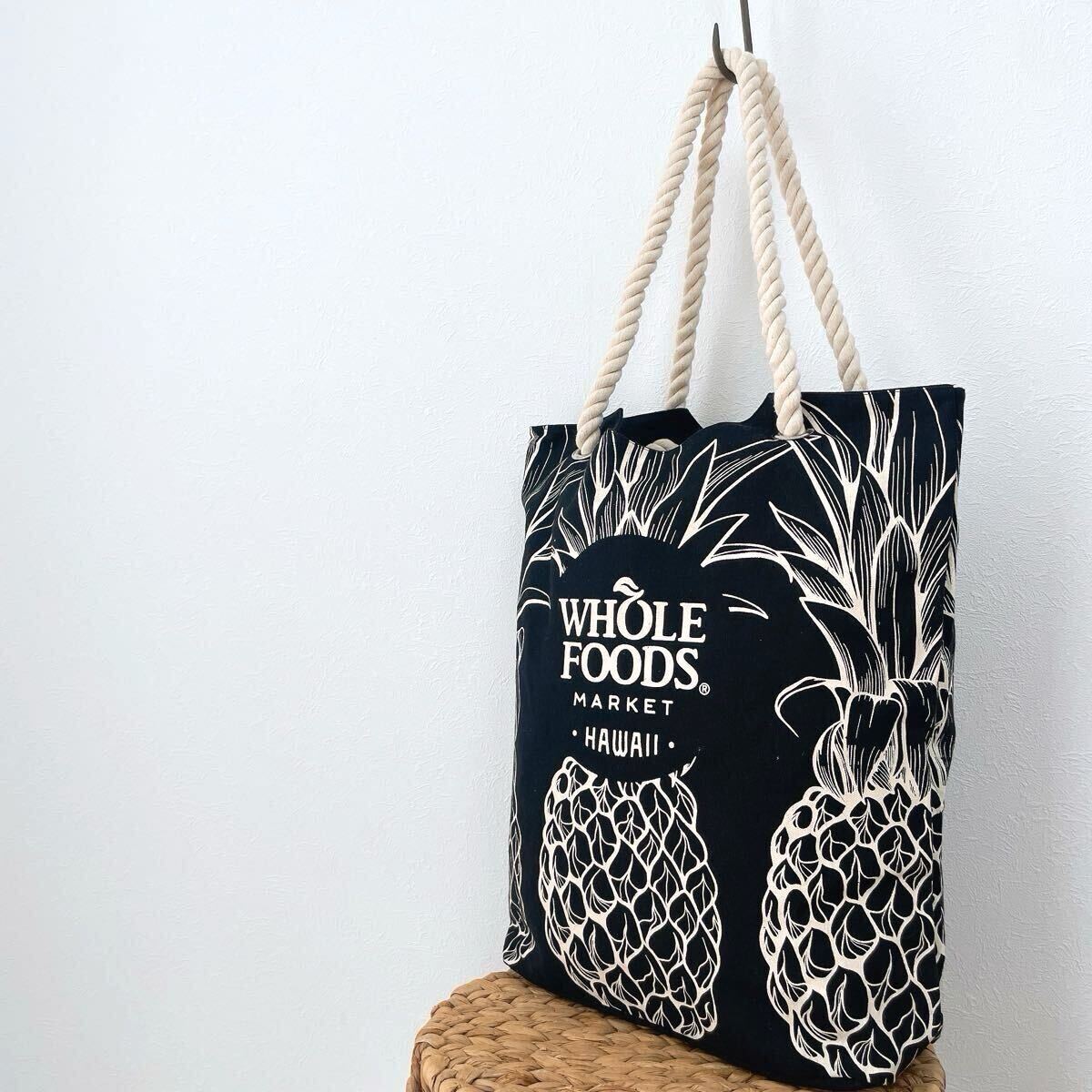 新品★ホールフーズマーケットWHOLE FOODS MARKETエコバッグ お土産トートバッグ黒ブラックKAILUAカイルア金ハワイhawaiiパイナップル