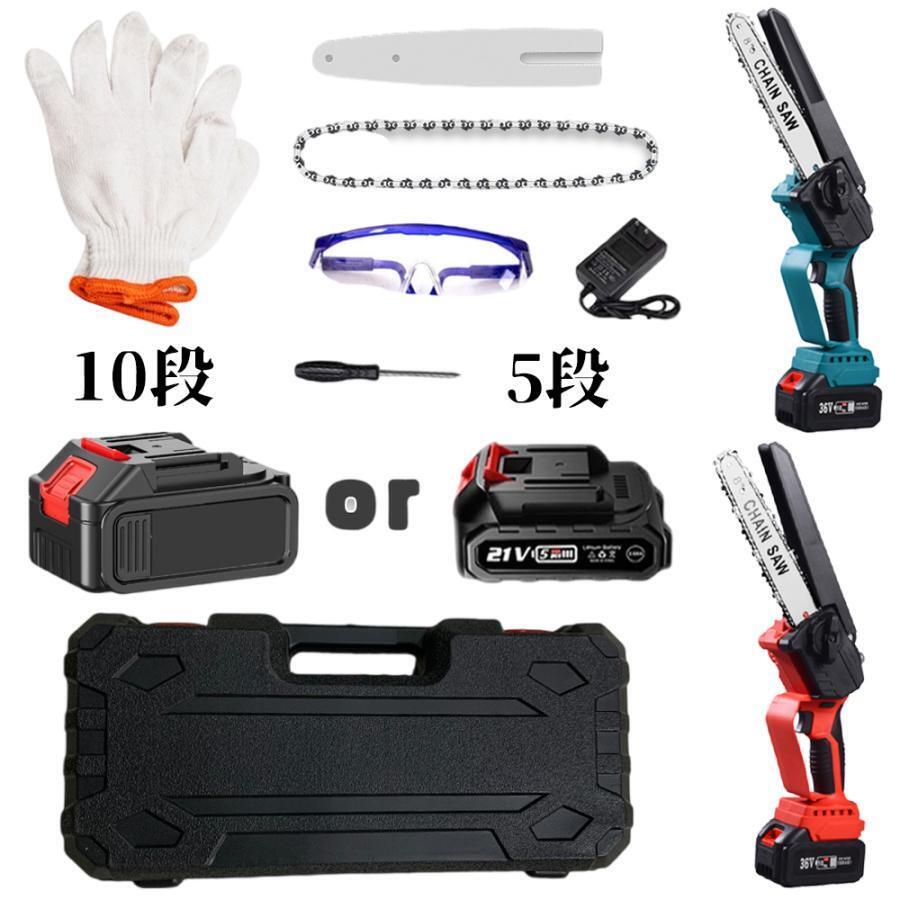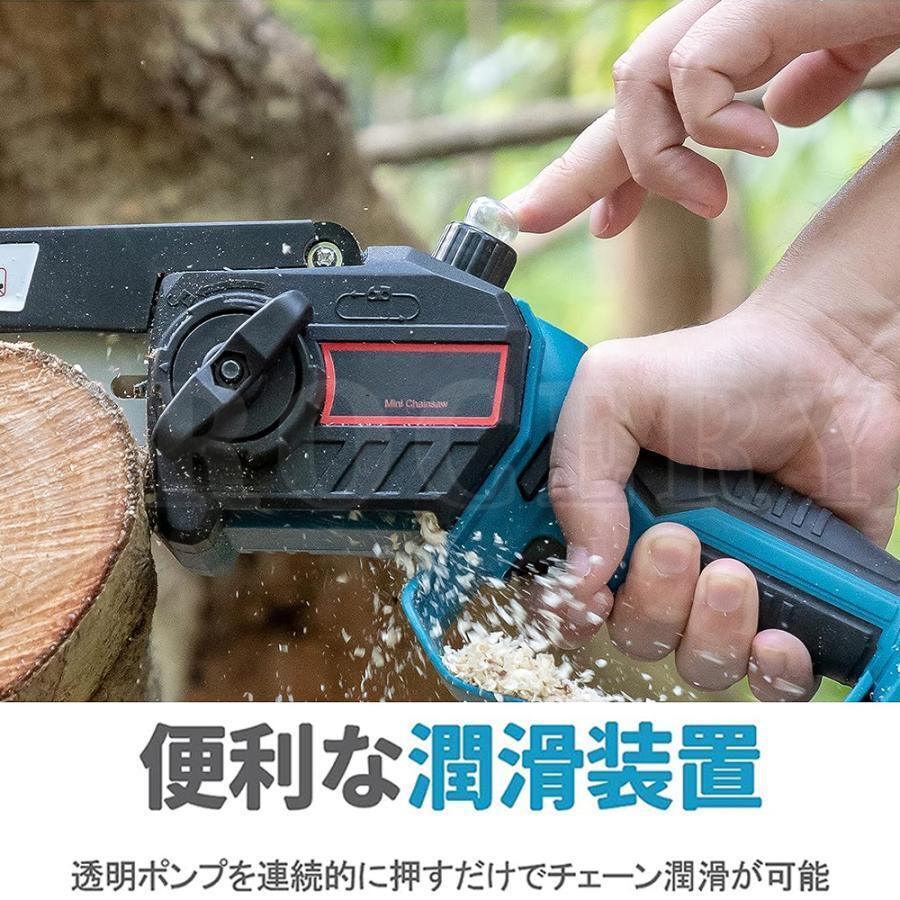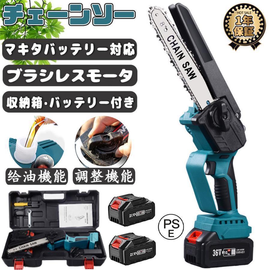充電式チェーンソー マキタ 18vバッテリー互換対応 8インチ 電動チェーンソー バッテリー付き 収納箱付き 自動給油 工具レスチェー 片手