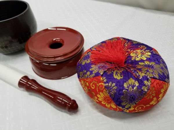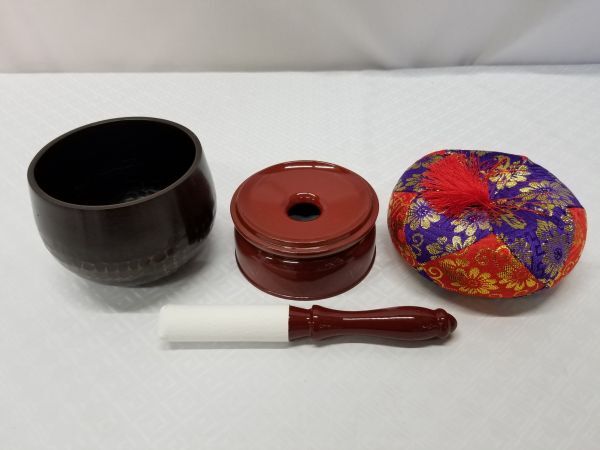 ◆新品◆手打ち 大徳寺リンセット 3寸◆丸布団◆直径9.3cm 大徳寺りん おりん リン 馨子 馨子 丸金台 仏壇 仏具 寺院仏具