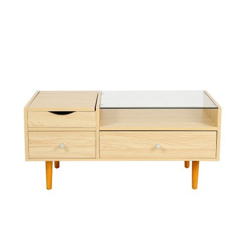 1.【魅力的なデザイン】半分引き出しで、半分ガラス設計のデザインで、人に見せたくないものだけでなく、雑誌や新聞などすぐ手に届けるものをガラス下の棚に楽々収納できます。
