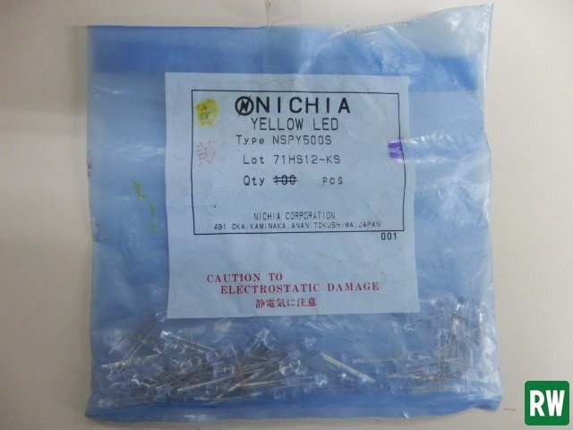 | 発光ダイオード 【約65個入】 黄色 YELLOW LED 日亜化学工業 NSPY500S 砲弾型 φ5×8.5mm 全長30mm 電子部品 パーツ |