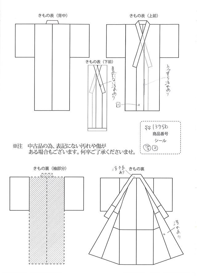 ★サイズ 身丈157.5cm 裄丈63cm 袖丈45cm 袖幅32.5cm 前幅25cm 後幅30.8cm