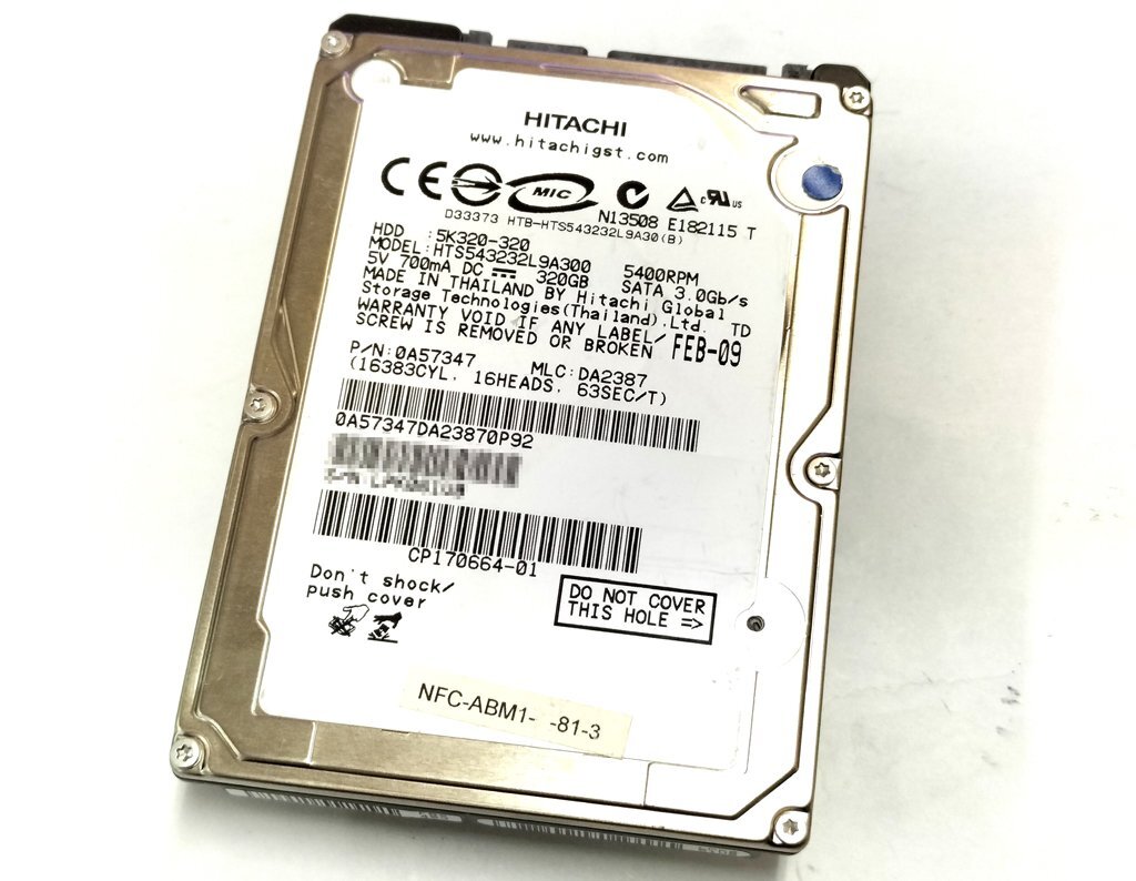 (稼働4344h)HITACHI Travelstar 5K500 (HTS545016B9A300) 160GB 2.5インチ 9.5mm厚 SATA 5400rpm DTJZ