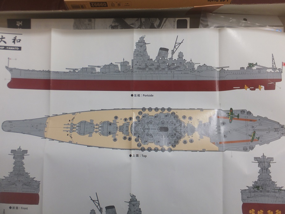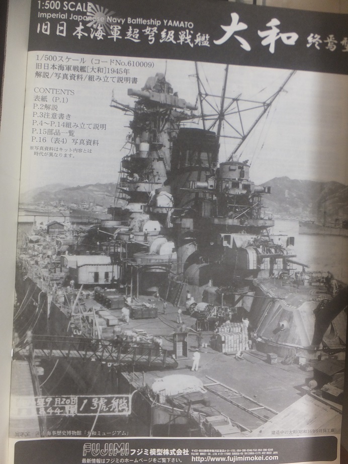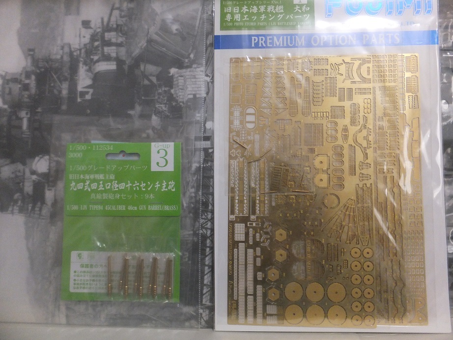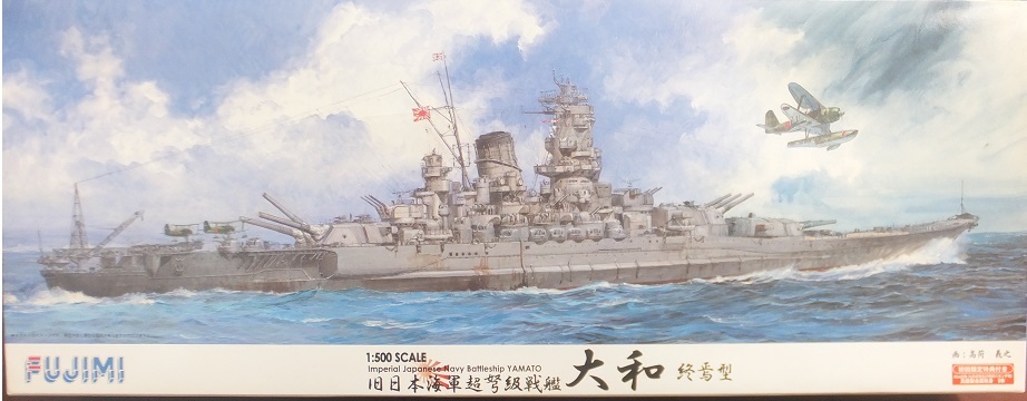 震災による箱潰れ裂け一部有 別売エッチングシート付 フジミ 1/500 戦艦大和 終焉型 初回真鍮製砲身付 未組立キット | ||||||||||||||||||