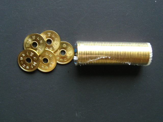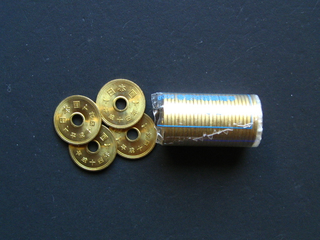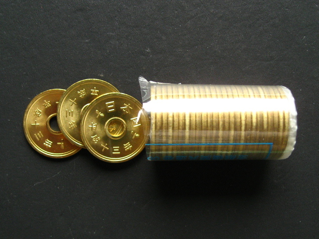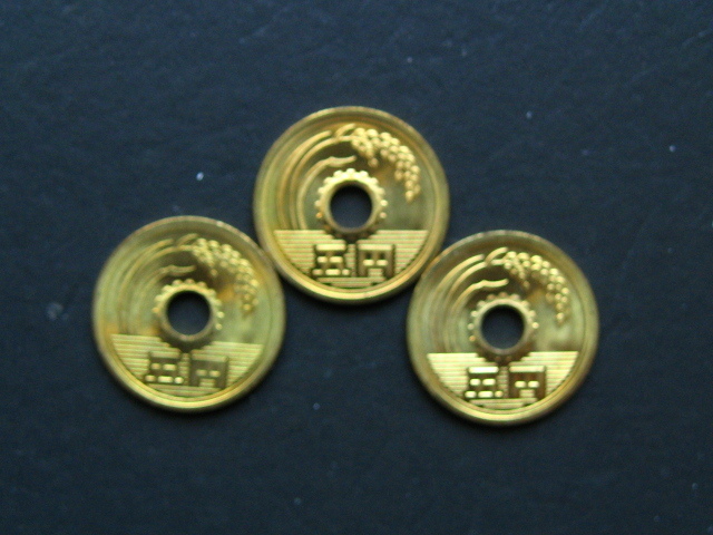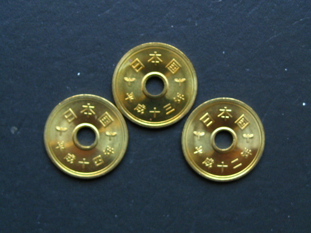 5円黄銅貨<平成12・13・14年>(ロール出し未使用)3枚セットです。
