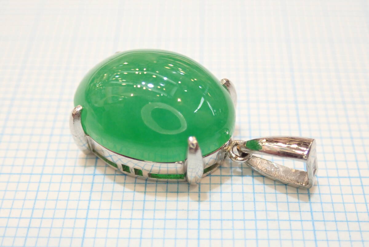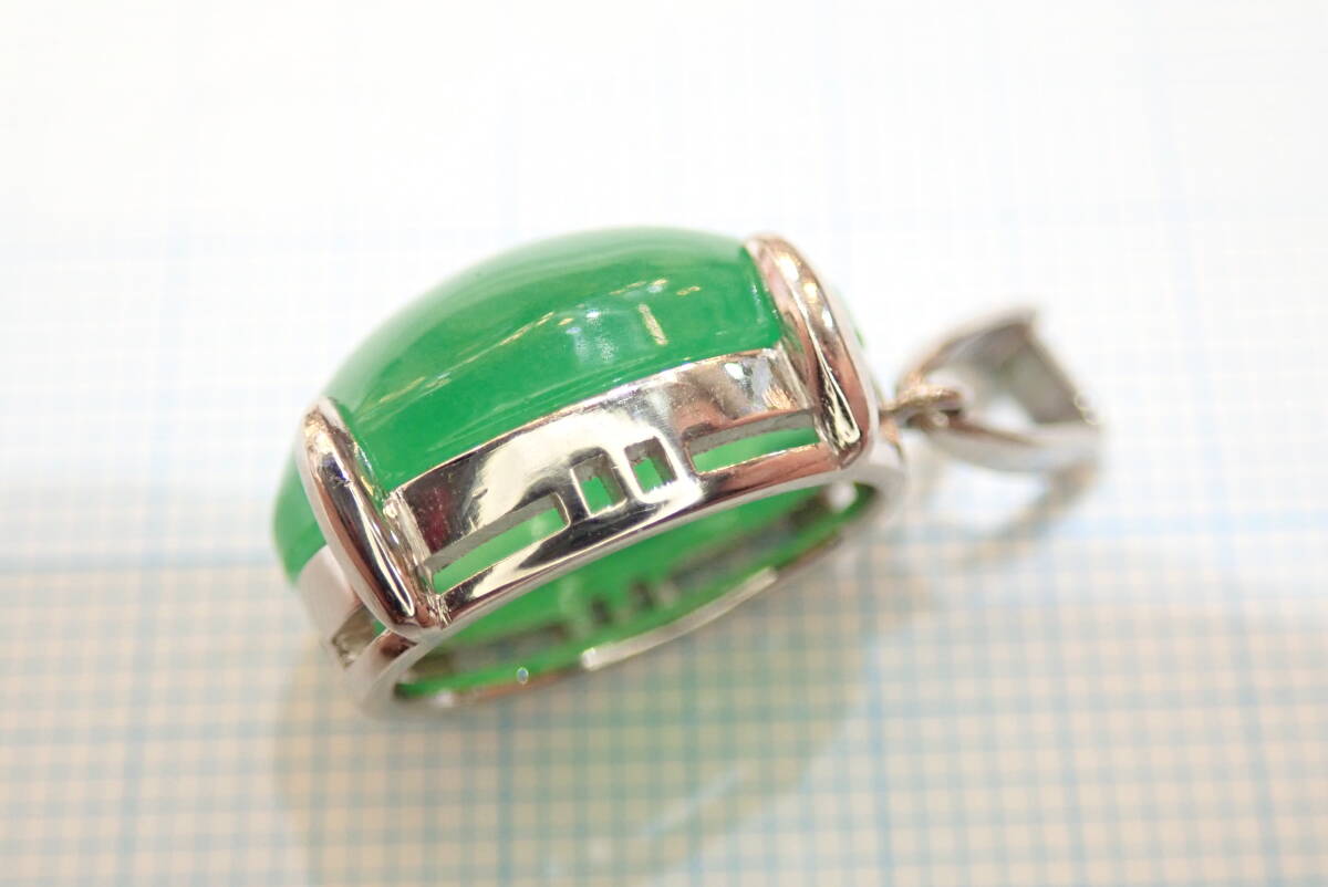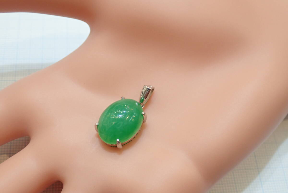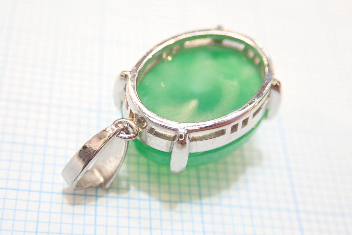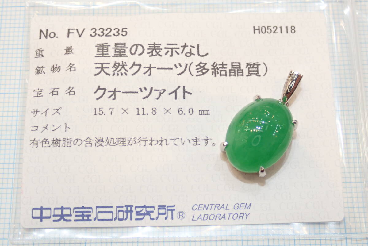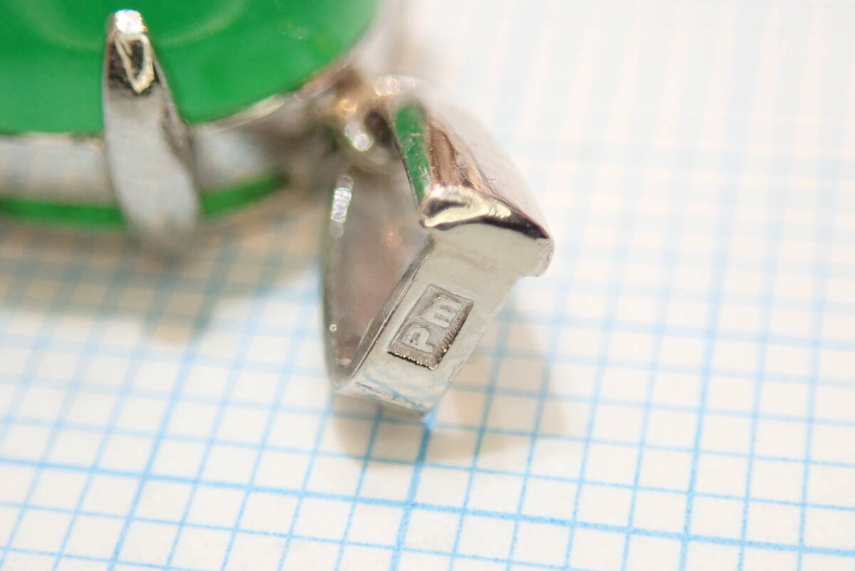 プラチナ枠に、トロンっとした色合いで翡翠かと思いましたが何かが違うと思い、 出品にあたり中央宝石研究所のソーティングを取りました。
