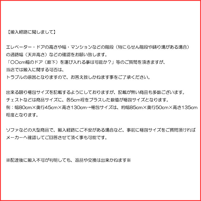 落札・ご購入前に、必ず商品の搬入経路の確認をお願いします。
