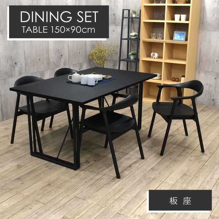 ダイニング5点セット 幅150cm 北欧風 オーク nok150-5-tom351bkita ブラック色 4人掛け 鉄脚 板座 スタイリッシュ シンプル 47s-6k tw