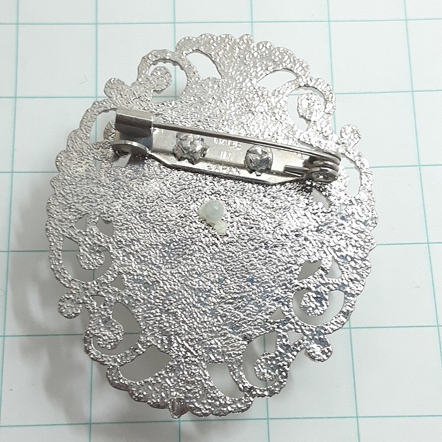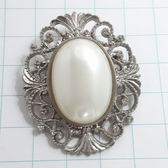 送料無料)ビンテージ☆パール 定番エンブレム☆アンティーク ブローチ A28261