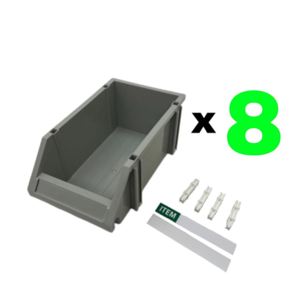 【三方良し】連結パーツボックスグレー色 8個セット 名札付 部品収納ケース 収納ボックス Lサイズ パーツボックス 収納 コンテナ ボックス